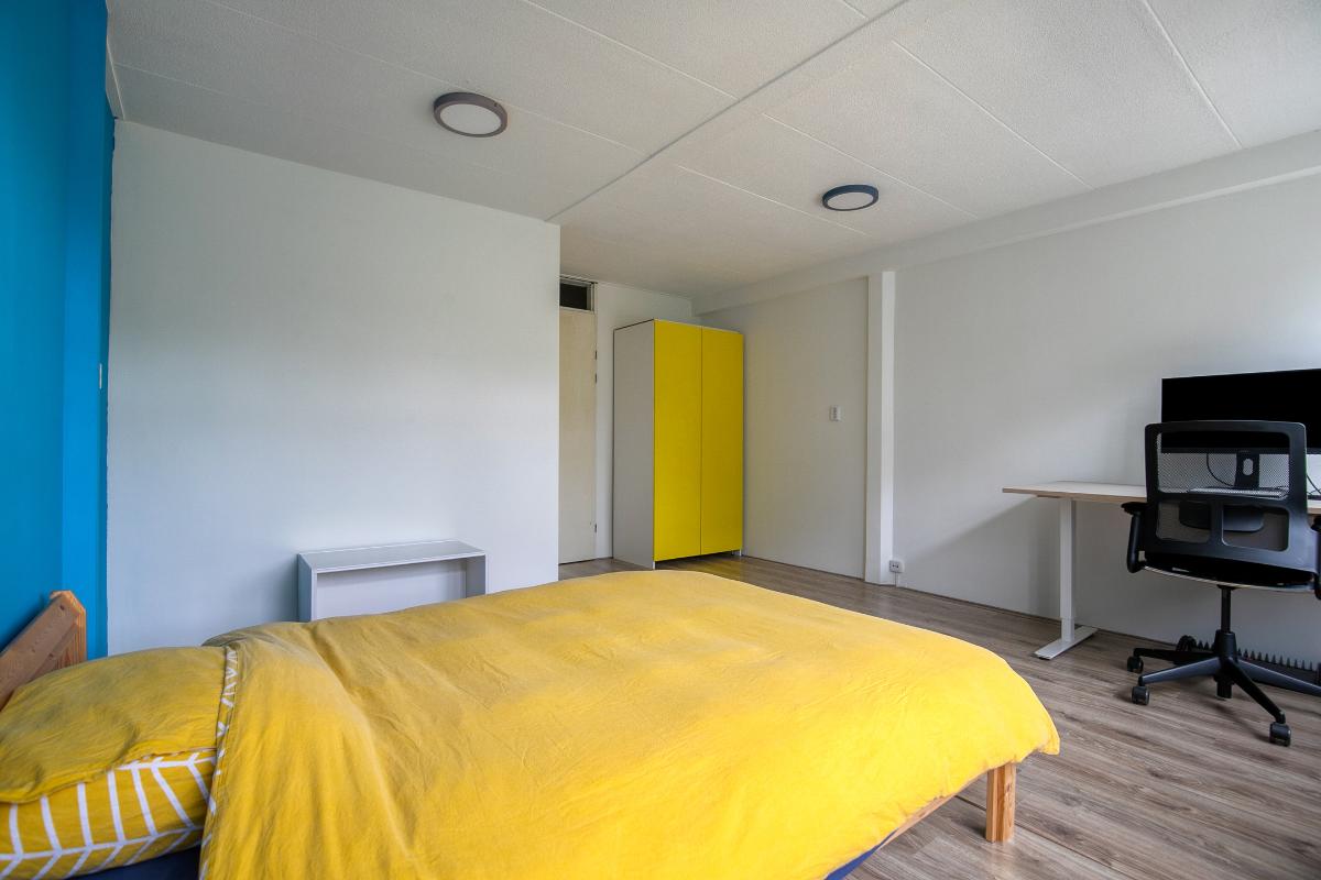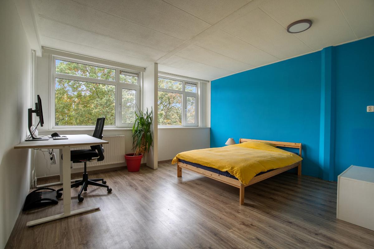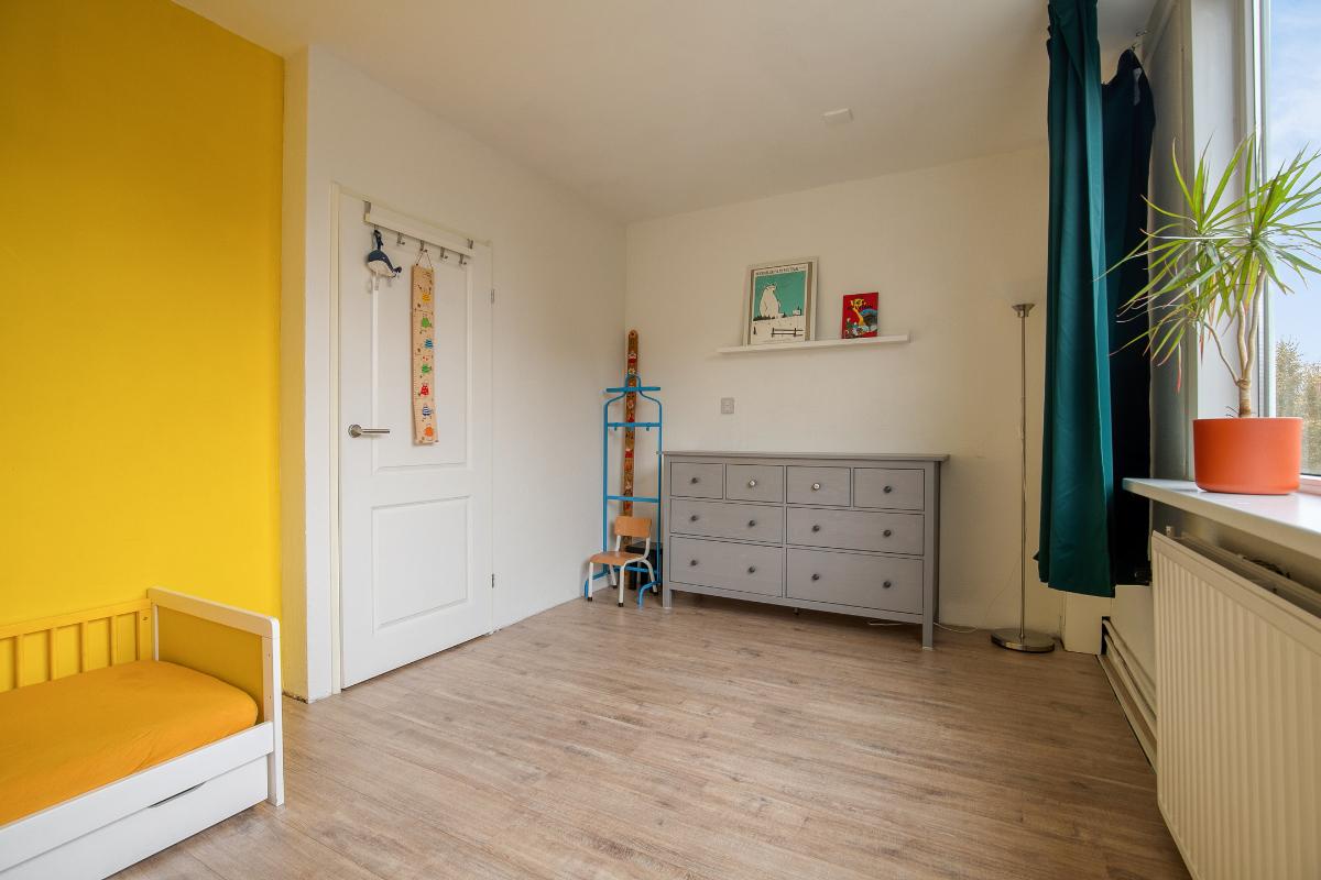 Slaapkamers: Slaapkamer 3: ligt aan de achterzijde van de woning, een ruime kamer met kunststof kozijnen met draai-kiepramen. Er ligt laminaat en de wanden zijn glad gestukt. Deze kamer geeft ruimte om uit te breiden naar twee slaapkamers. Slaapkamer 4: ligt aan de voorzijde van de woning, heeft dezelfde afwerking als slaapkamer 3.