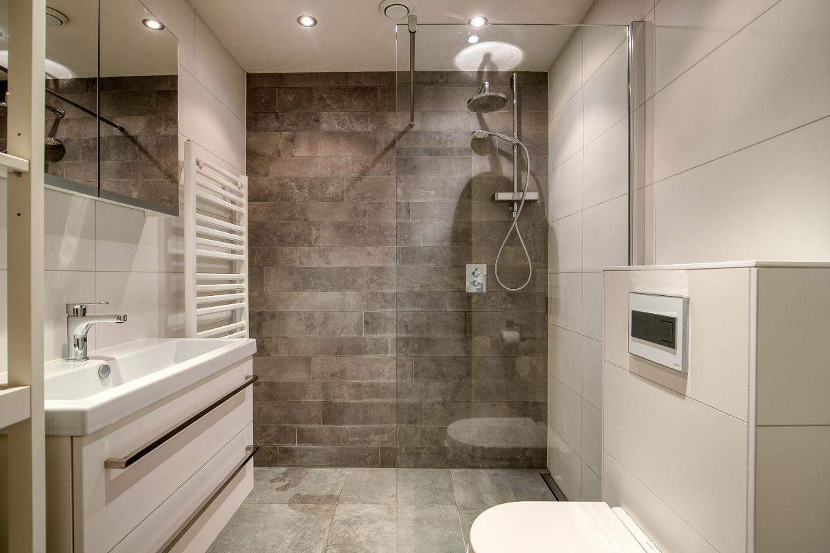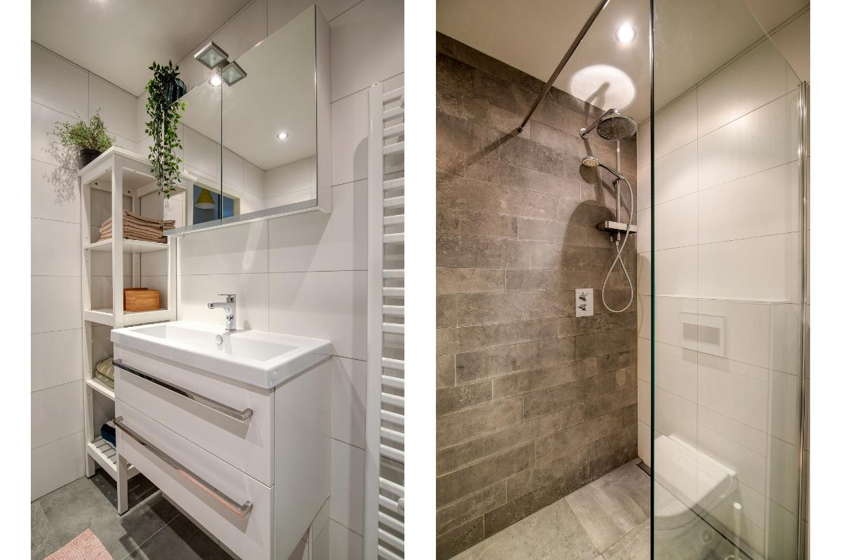 Badkamer: Deze moderne inpandige badkamer heeft een ruime inloop douche met hardglazen wand voorzien van een stortdouche met handdouche. Zwevend 3e toilet, wastafelmeubel en designradiator.