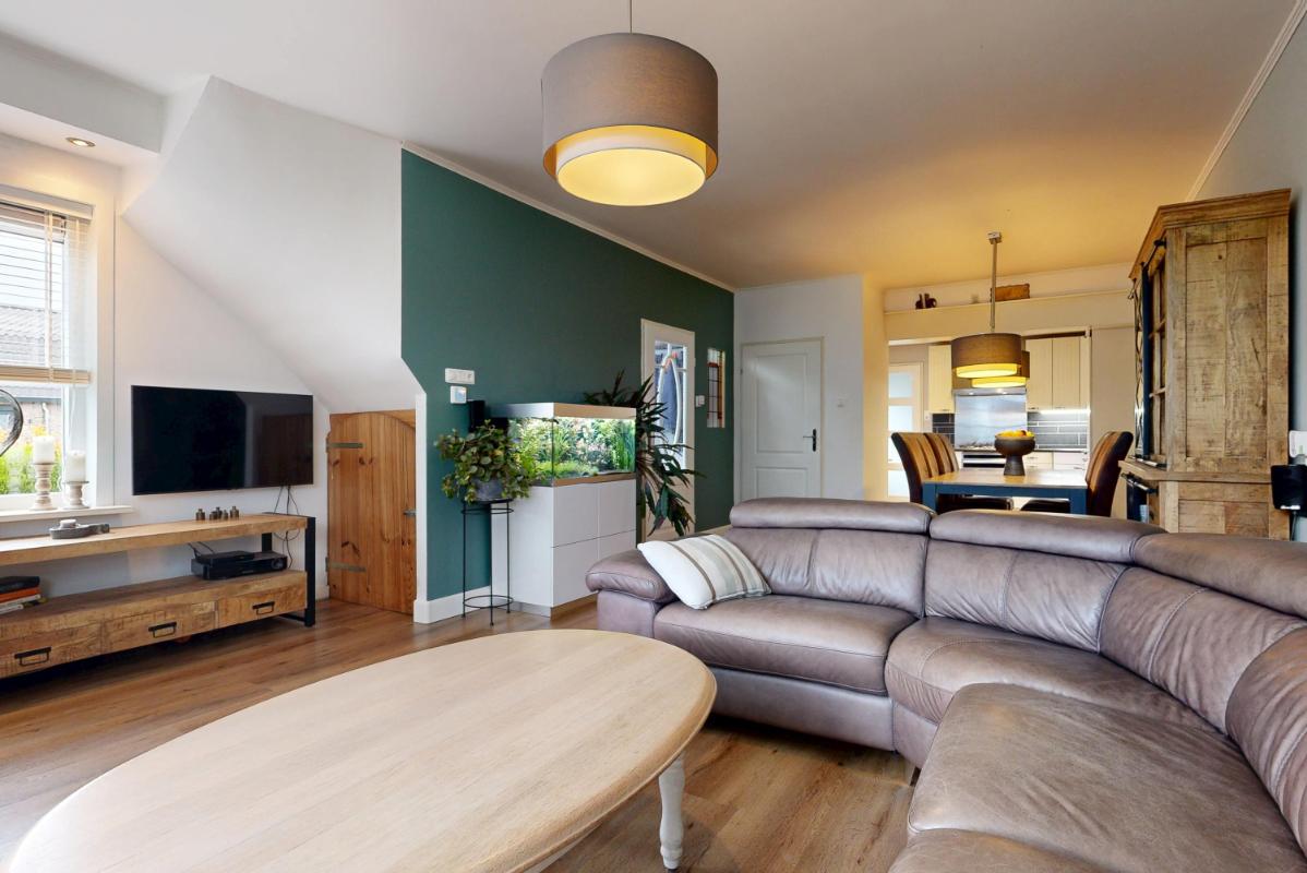 De woning is praktisch ingericht en heeft aan de voorzijde een sfeervolle erker die zorgt voor veel lichtinval in de woonkamer. Aan de achterzijde bevindt zich de open keuken. Op de begane grond is verder veel bergruimte, een toiletruimte en een badkamer met witgoedaansluitingen te vinden.