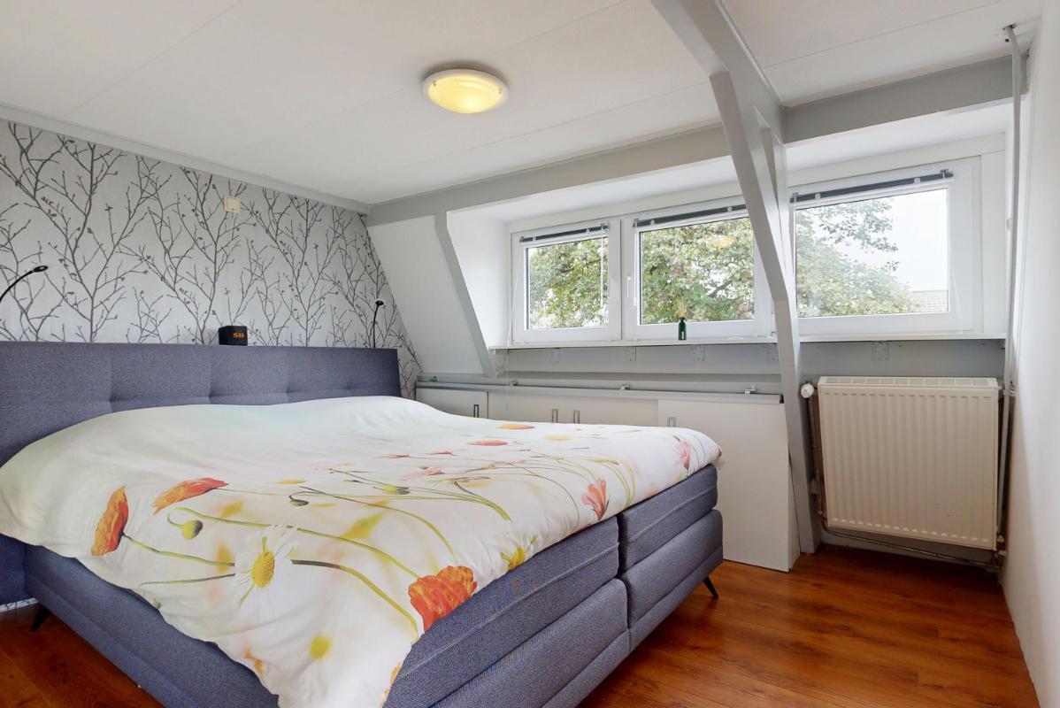 De verdieping is uitgebreid met twee grote dakkapellen, waardoor er volop ruimte en licht is ontstaan. Hier bevinden zich drie slaapkamers en een tweede badkamer met douche, toilet en wastafelmeubel. Via de overloop is de vliering bereikbaar, die dankzij twee dakramen perfect dienst kan doen als bergzolder of hobbyruimte.