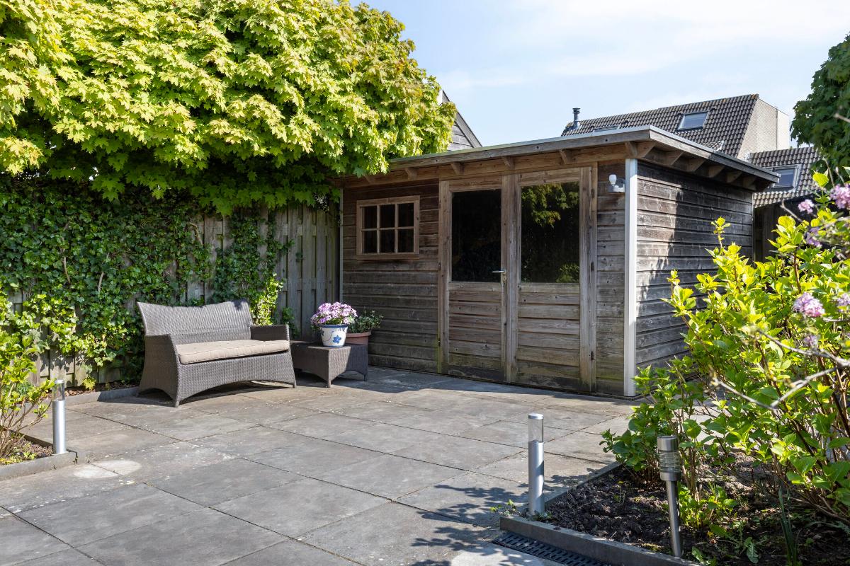 Berging: De vrijstaand houten berging is gelegen in de achtertuin. Dit is de perfecte plek om uw tuinkussens en tuingereedschap op te ruimen.