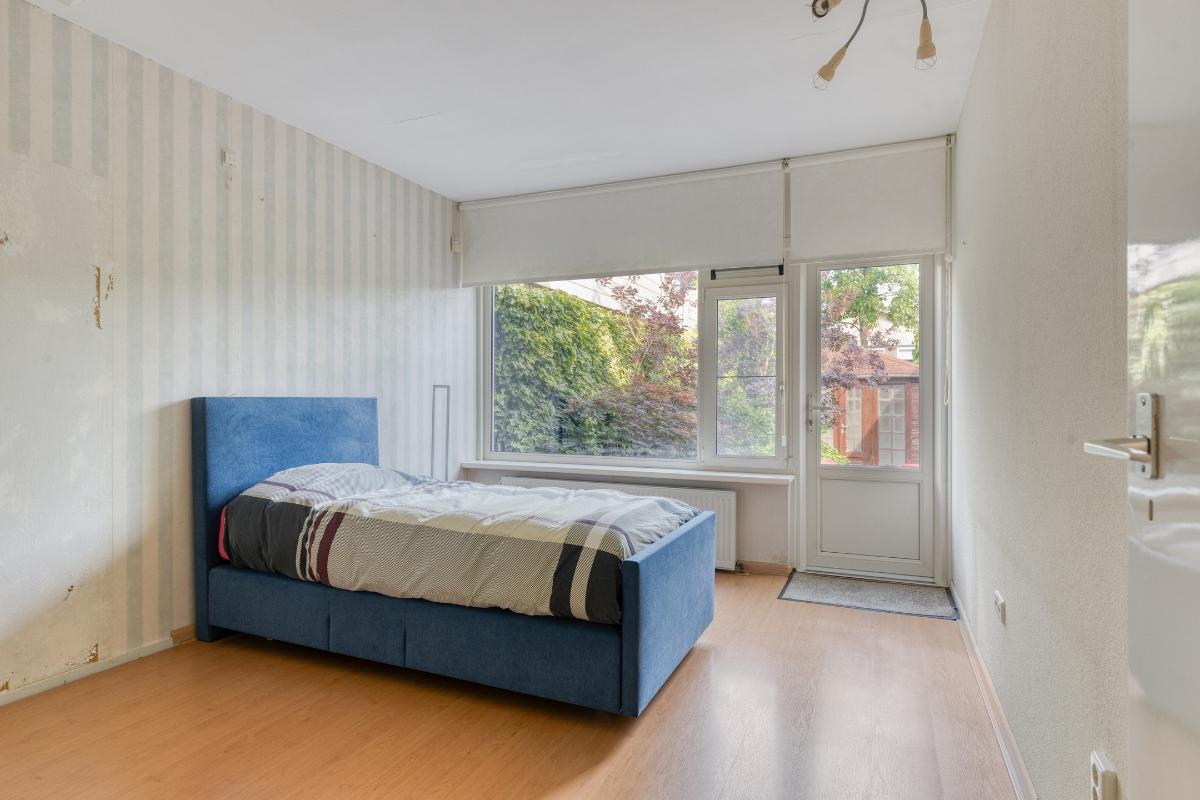 Slaapkamer 2: De (master) slaapkamer is gesitueerd aan de achterzijde en beschikt over uitzicht op de achtertuin, evenals directe toegang tot de tuin.