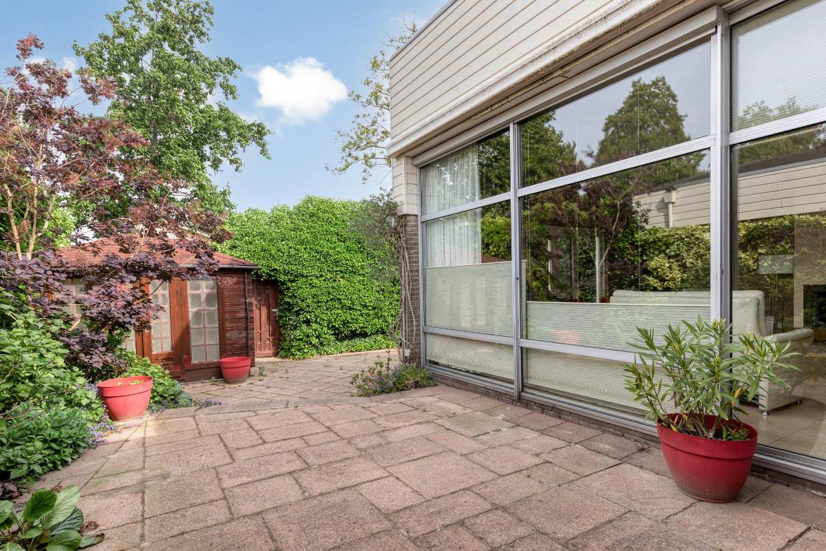 Tuin: De achtertuin, gelegen op het noordwesten, is een heerlijke, L-vormige buitenruimte die veel privacy en comfort biedt. Diverse groenperken zorgen voor een natuurlijke, groene sfeer, terwijl meerdere zithoekjes uitnodigen om te ontspannen of gezellig te barbecueën. Voor extra comfort is de tuin voorzien van buitenverlichting, een buitenkraan en een handige achterom. Daarnaast is een zonnescherm aanwezig, dat met afstandsbediening bediend kan worden, waardoor u gemakkelijk de gewenste schaduw creëert.