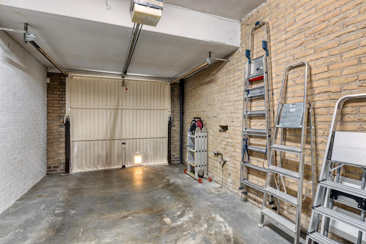 Garage: De aangebouwde garage is veelzijdig en volledig uitgerust met elektra, water en verwarming, waardoor hij voor diverse doeleinden geschikt is. U betreedt de garage via een deur vanuit de hal, terwijl de elektrische roldeur – momenteel buiten gebruik – u toegang biedt tot de voortuin. Daarnaast beschikt de ruimte over de cv-ketel, een gootsteen en een kastje dat achterblijft, wat extra opbergruimte biedt.