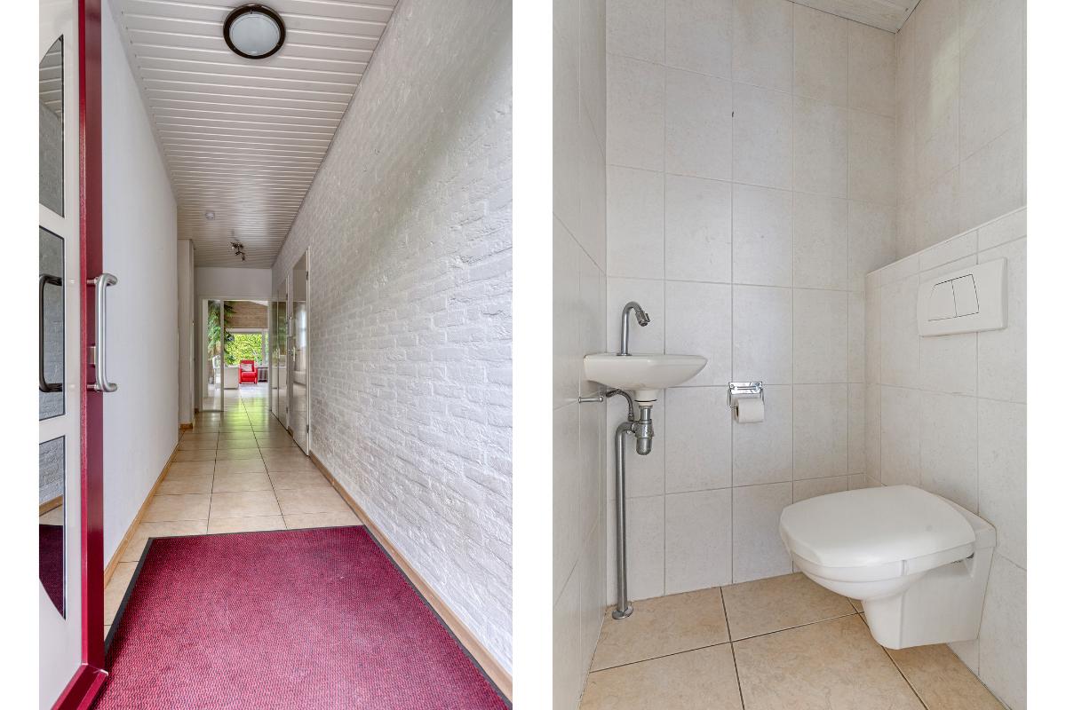 Wasruimte: De wasruimte, centraal gelegen tussen de slaapkamers, is ruim van opzet en biedt voldoende plaats voor zowel een wasmachine en droger als een wastafel. Daarnaast is er voldoende ruimte om een wasrek te plaatsen, waardoor u de was op een nette en praktische manier uit het zicht kunt laten drogen.
