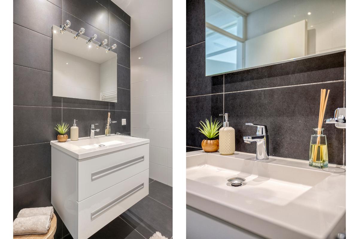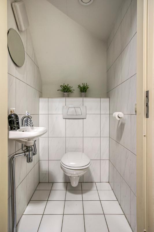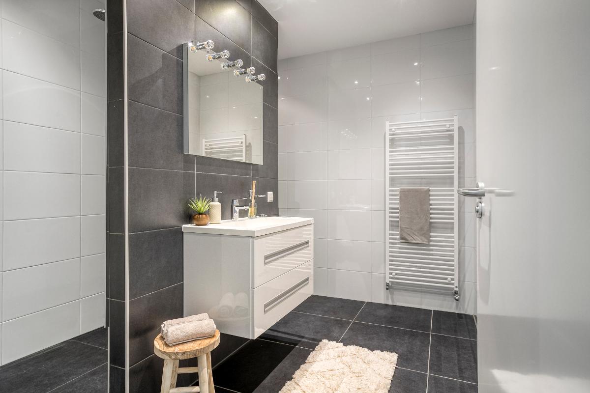 Badkamer: De moderne badkamer is zorgvuldig ontworpen met een U-opstelling, waardoor de verschillende elementen op een overzichtelijke en functionele manier zijn geplaatst. Aan één zijde vindt u de inloopdouche met regendouche en handdouche, terwijl aan de andere zijden de wastafel met wastafelmeubel en het toilet zijn gesitueerd. Deze indeling zorgt voor optimale benutting van de beschikbare ruimte. Daarnaast is de badkamer voorzien van een handdoekradiator en inbouwspots.