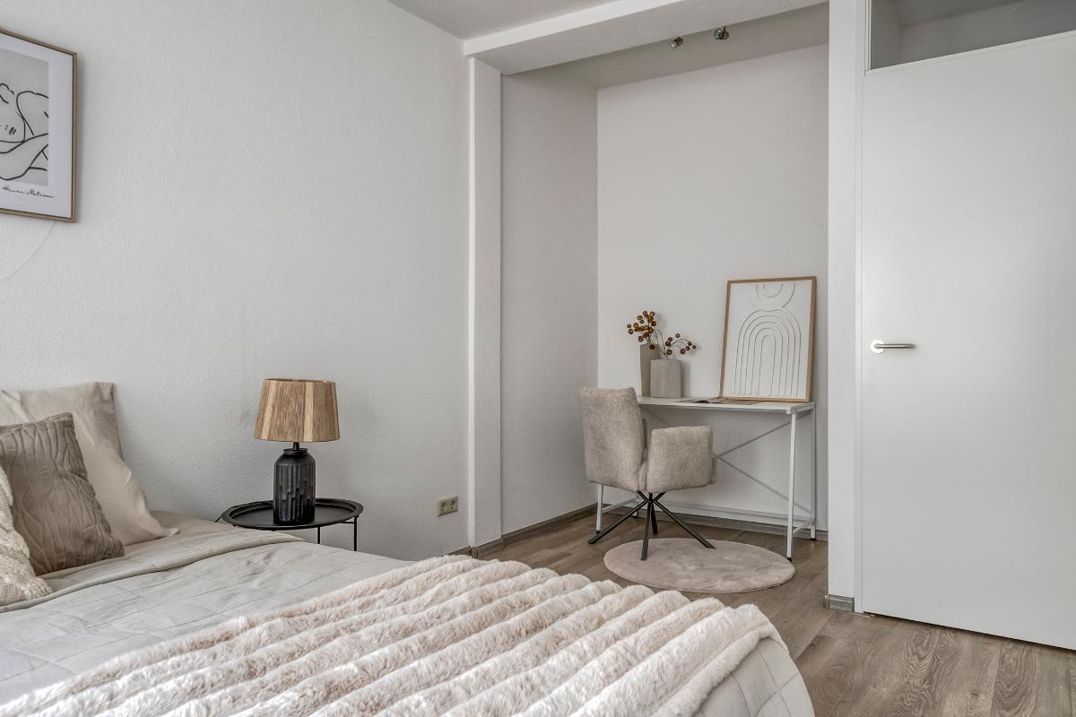Slaapkamers: Slaapkamer 1: Deze ruime slaapkamer aan de rechterzijde is uitgerust met een dubbele raampartij die uitzicht biedt op de achtertuin. De kamer is daarnaast sfeervol ingericht met een gezellig zithoekje, ideaal om thuis te werken.