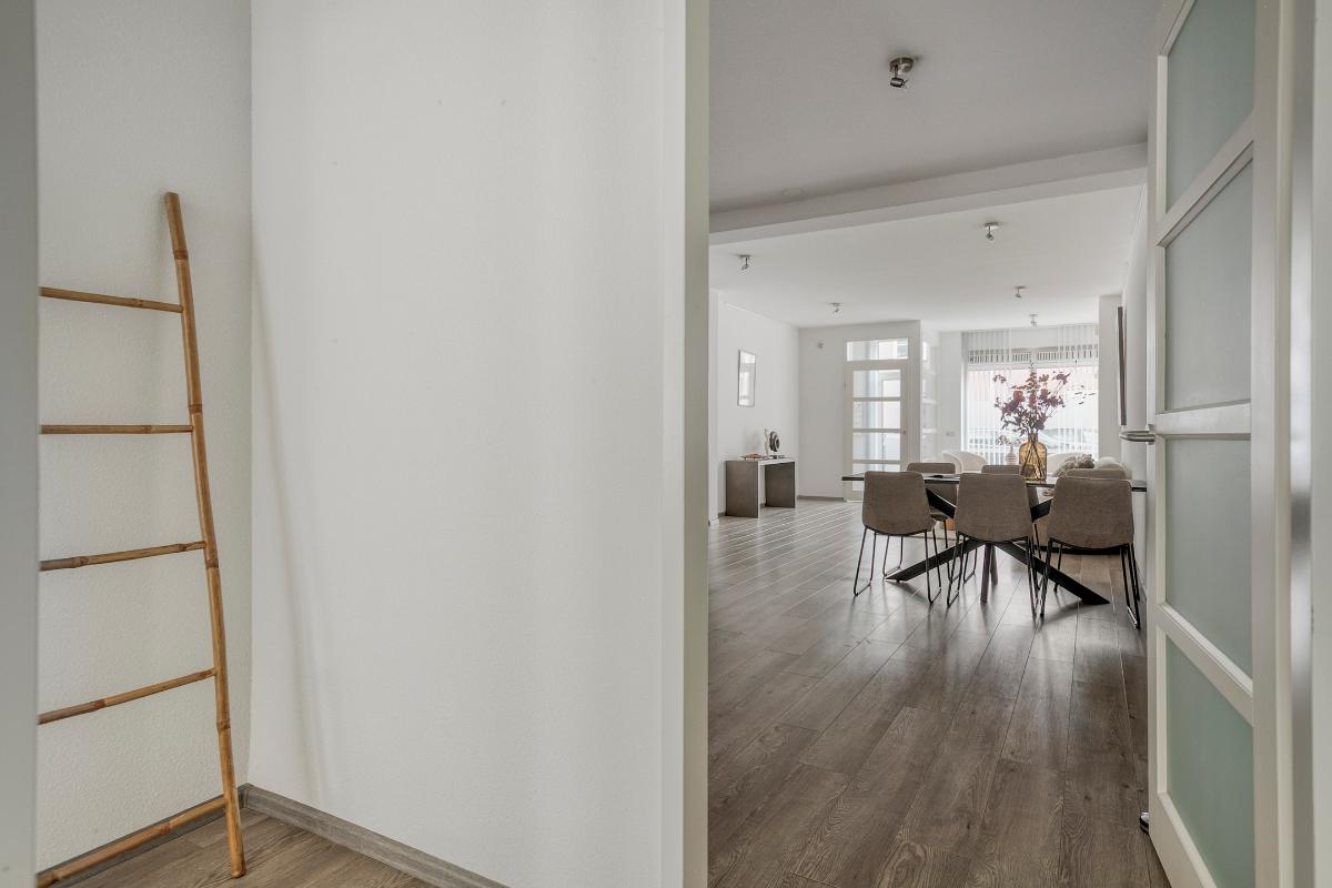 Hal: De hal biedt toegang tot de woonkamer en is voorzien van stijlvolle glazen wanden, die zorgen voor een open en lichte indruk. Tevens bevindt zich hier de meterkast en de brievenbus.