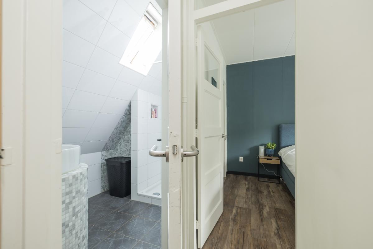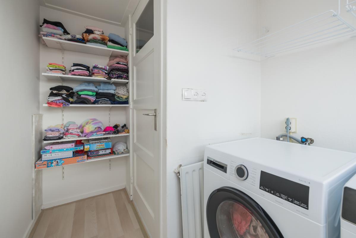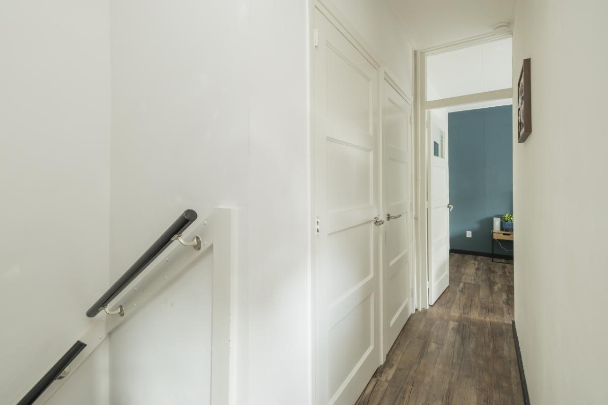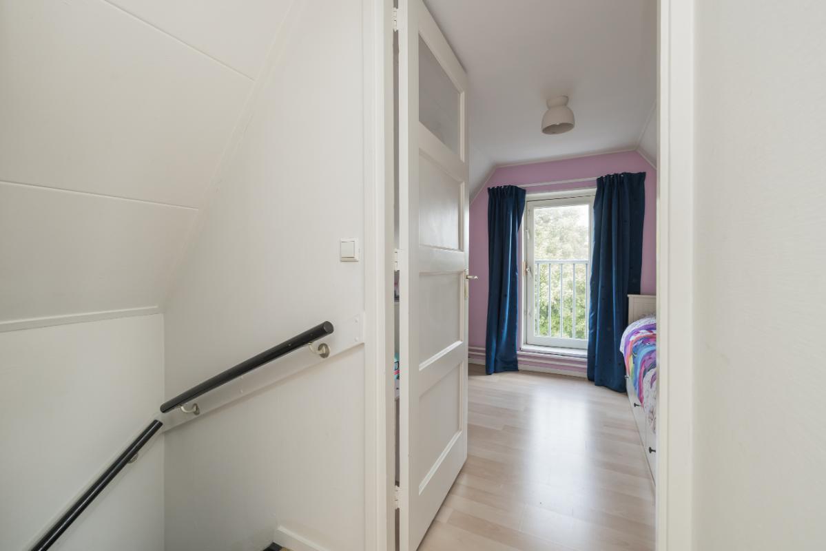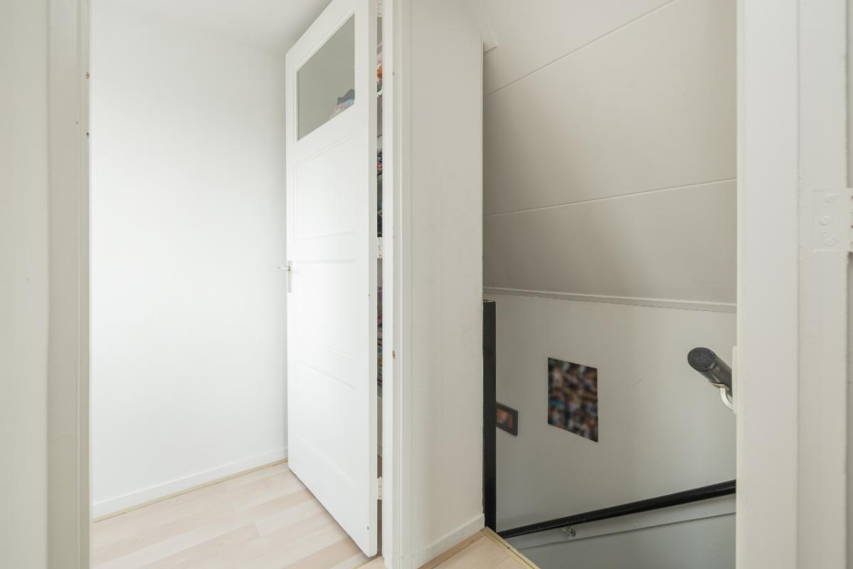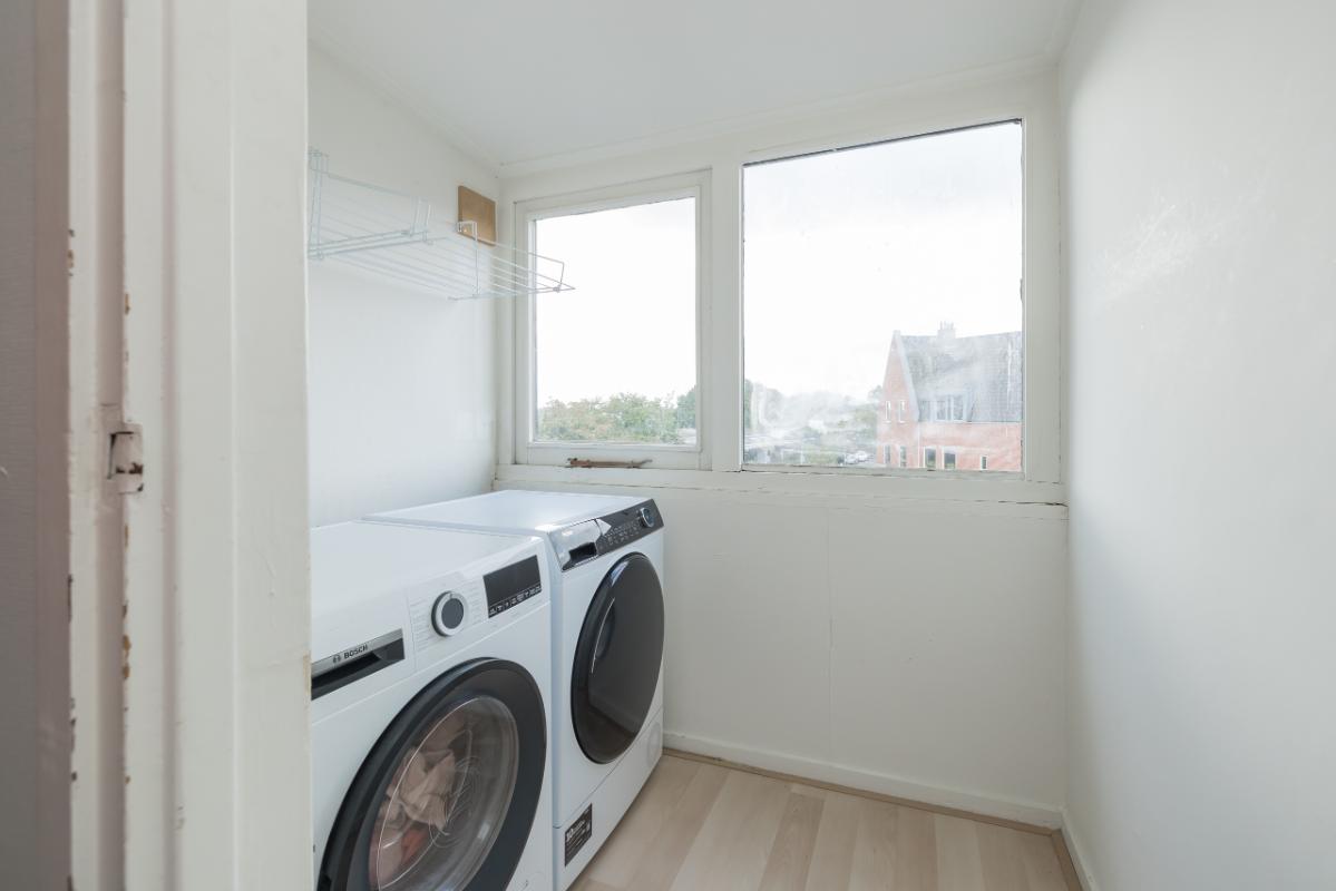 2e Etage Overloop. Aparte wasruimte voorzien van dakkapel en aansluitingen voor de wasmachine en droger. Ruime slaapkamer met Frans balkon en deur naar de royale bergvliering v.v. opstelling CV-combiketel.