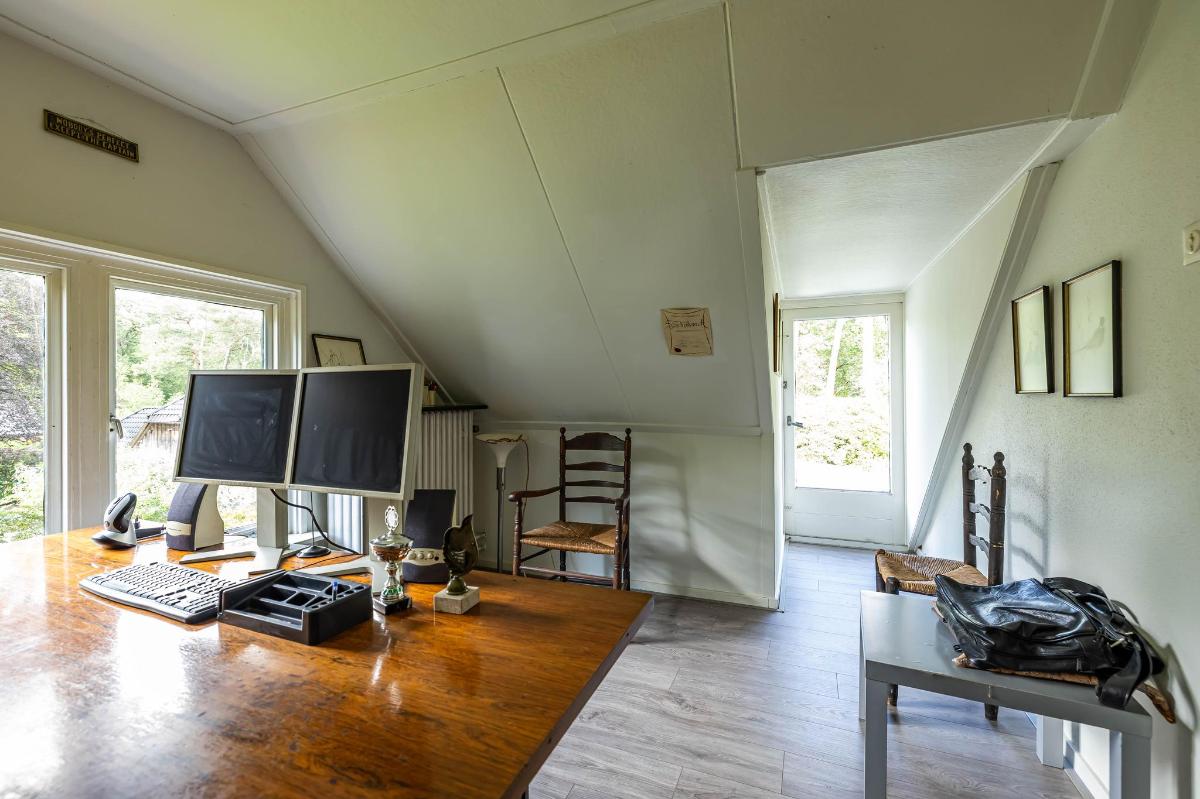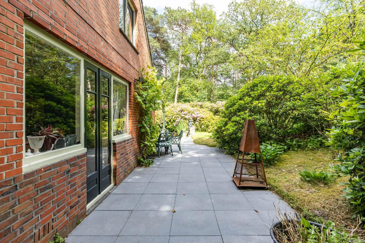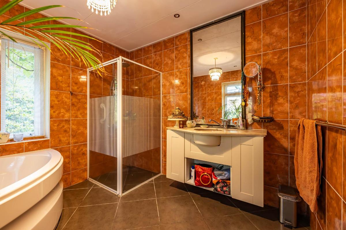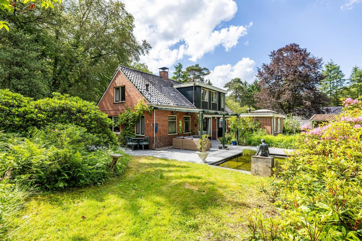 Indeling: Begane grond: Via de eigen oprijlaan bereikt u de woning en komt u binnen in de entree die toegang geeft tot de woonkamer, de woonkeuken en apart toilet. De grote woonkeuken is van alle gemakken voorzien en biedt een heerlijke plek om gezellig samen te komen met vrienden of familie. Via de keuken is het overdekte terras te bereiken. De eveneens ruime sfeervolle living met open haard is voorzien van grote raamkozijnen die uitkijken op de prachtige tuin. De voormalige en suite kamer is multifunctioneel te gebruiken en via de tuindeuren heeft u toegang tot een van de terrassen. In dit gedeelte van de woonkamer is gemakkelijk een extra slaapkamer te creëren, maar ook als loungehoek is deze ruimte ideaal. Via de hal, die te bereiken is vanuit de woonkamer, komt u bij de badkamer en de trapopgang naar de 1e verdieping. Ook in de badkamer is overal aan gedacht, zo is er een douche, een ruim hoekbad en een wastafel.