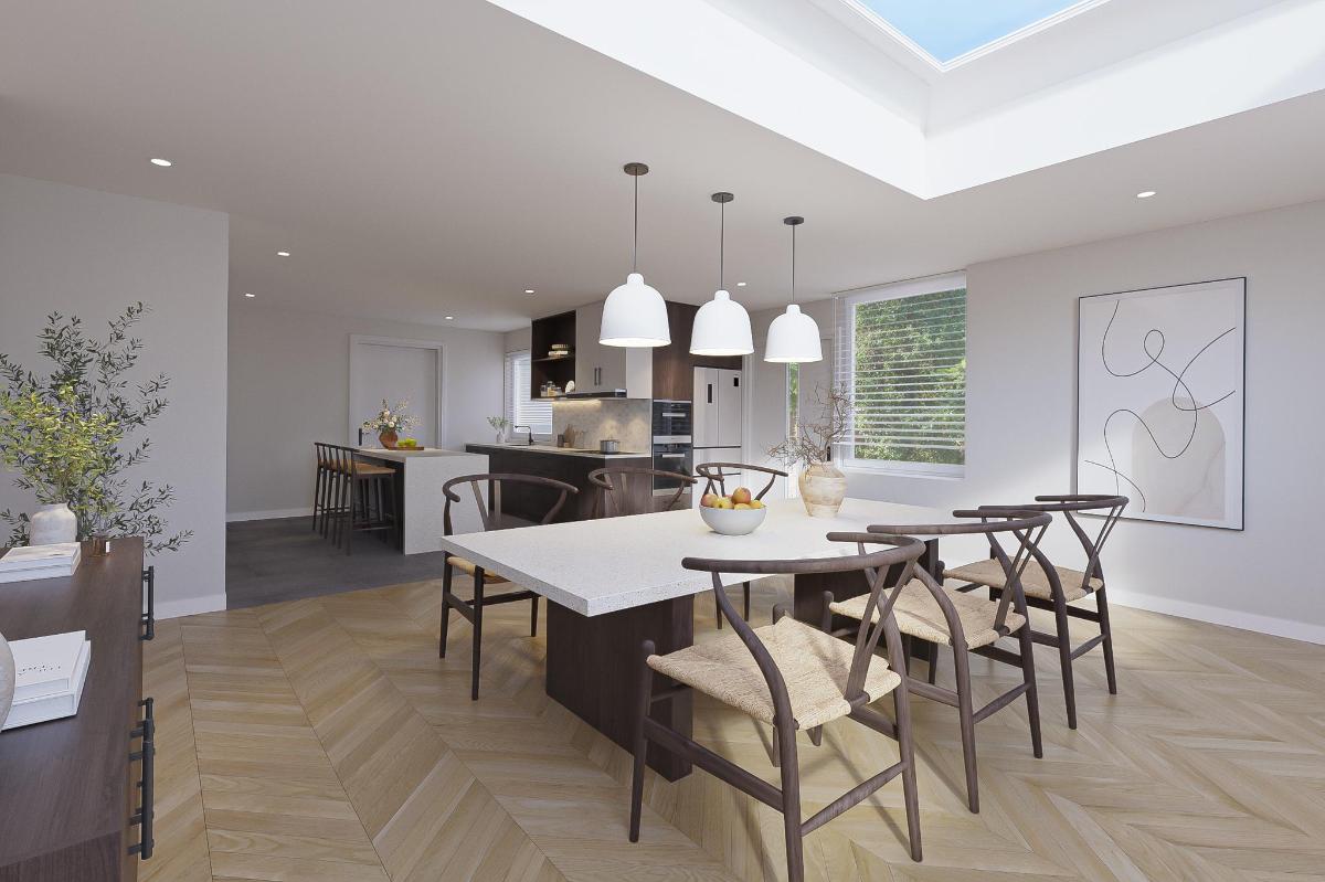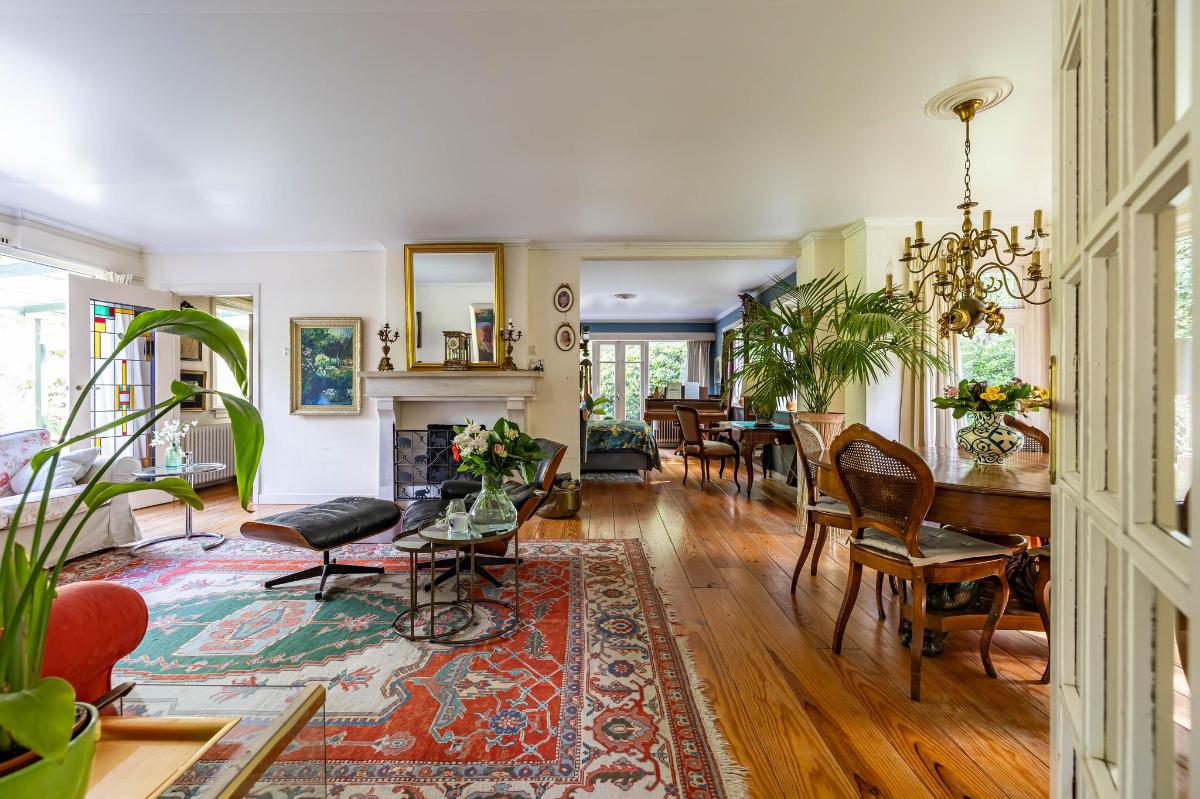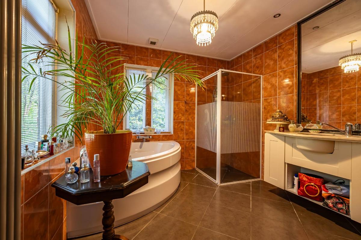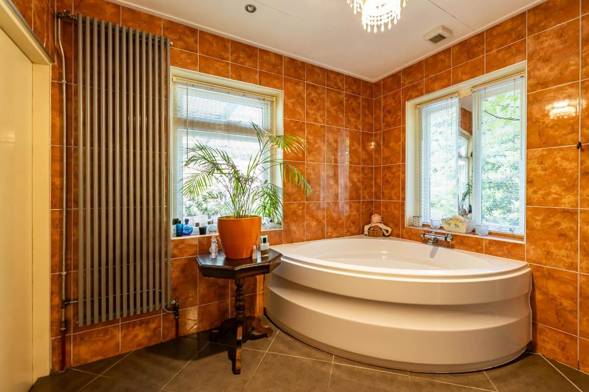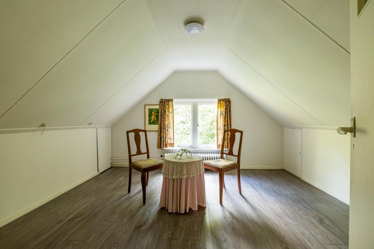 Indeling: Begane grond: Via de eigen oprijlaan bereikt u de woning en komt u binnen in de entree die toegang geeft tot de woonkamer, de woonkeuken en apart toilet. De grote woonkeuken is van alle gemakken voorzien en biedt een heerlijke plek om gezellig samen te komen met vrienden of familie. Via de keuken is het overdekte terras te bereiken. De eveneens ruime sfeervolle living met open haard is voorzien van grote raamkozijnen die uitkijken op de prachtige tuin. De voormalige en suite kamer is multifunctioneel te gebruiken en via de tuindeuren heeft u toegang tot een van de terrassen. In dit gedeelte van de woonkamer is gemakkelijk een extra slaapkamer te creëren, maar ook als loungehoek is deze ruimte ideaal. Via de hal, die te bereiken is vanuit de woonkamer, komt u bij de badkamer en de trapopgang naar de 1e verdieping. Ook in de badkamer is overal aan gedacht, zo is er een douche, een ruim hoekbad en een wastafel.