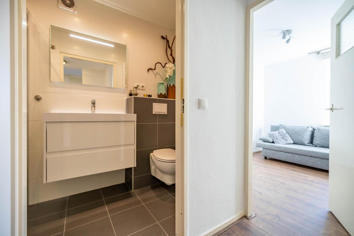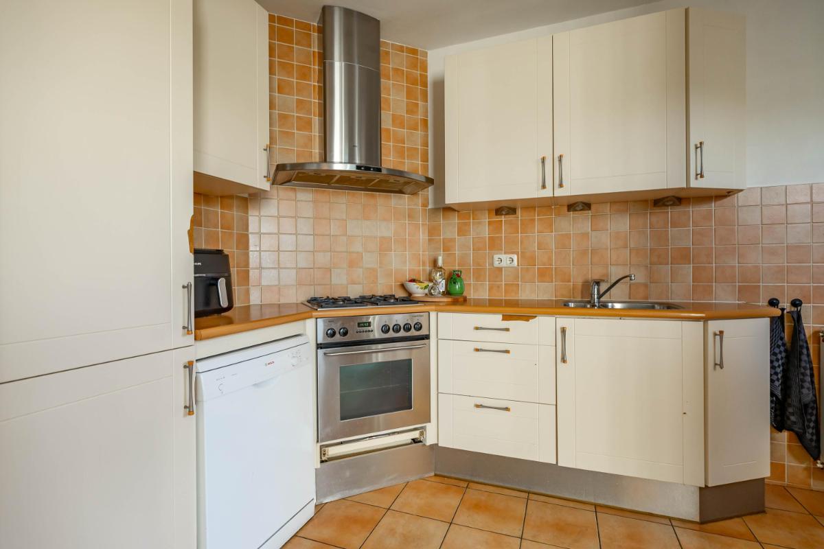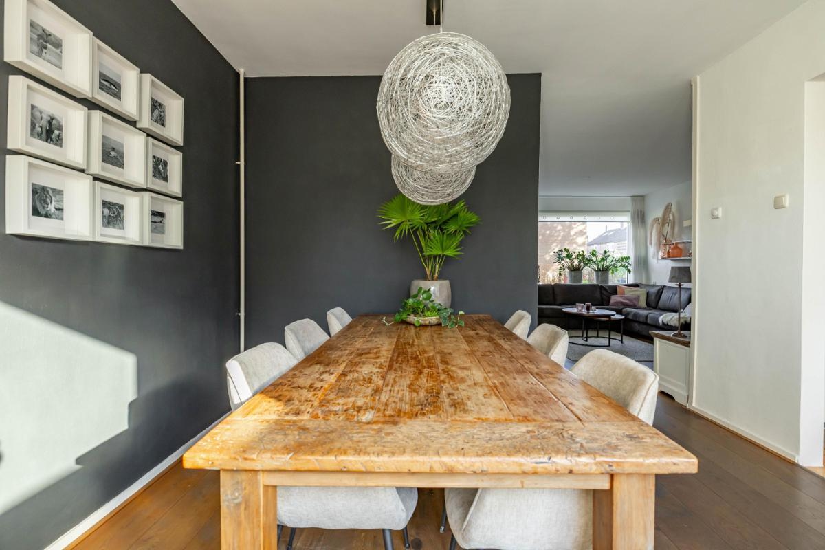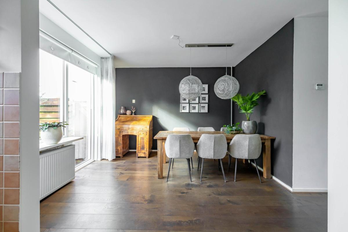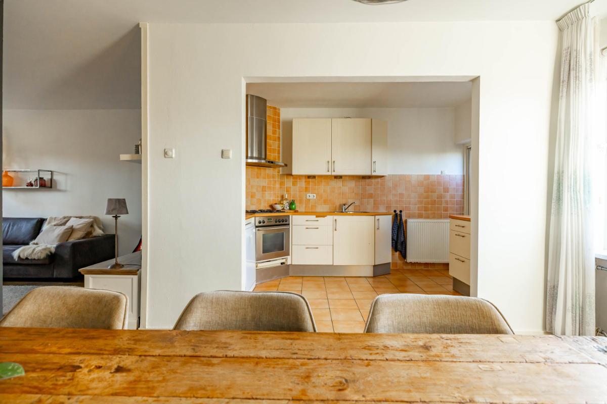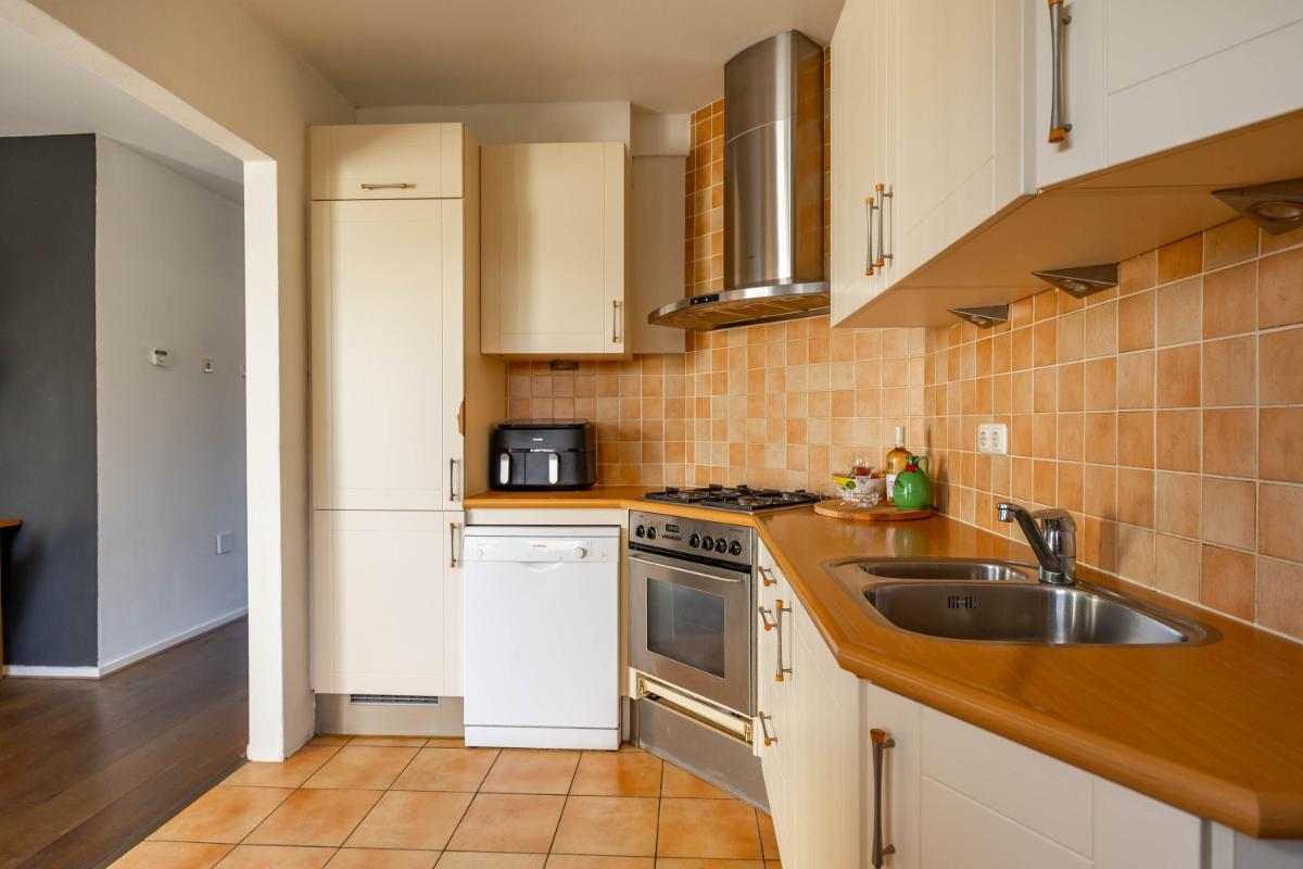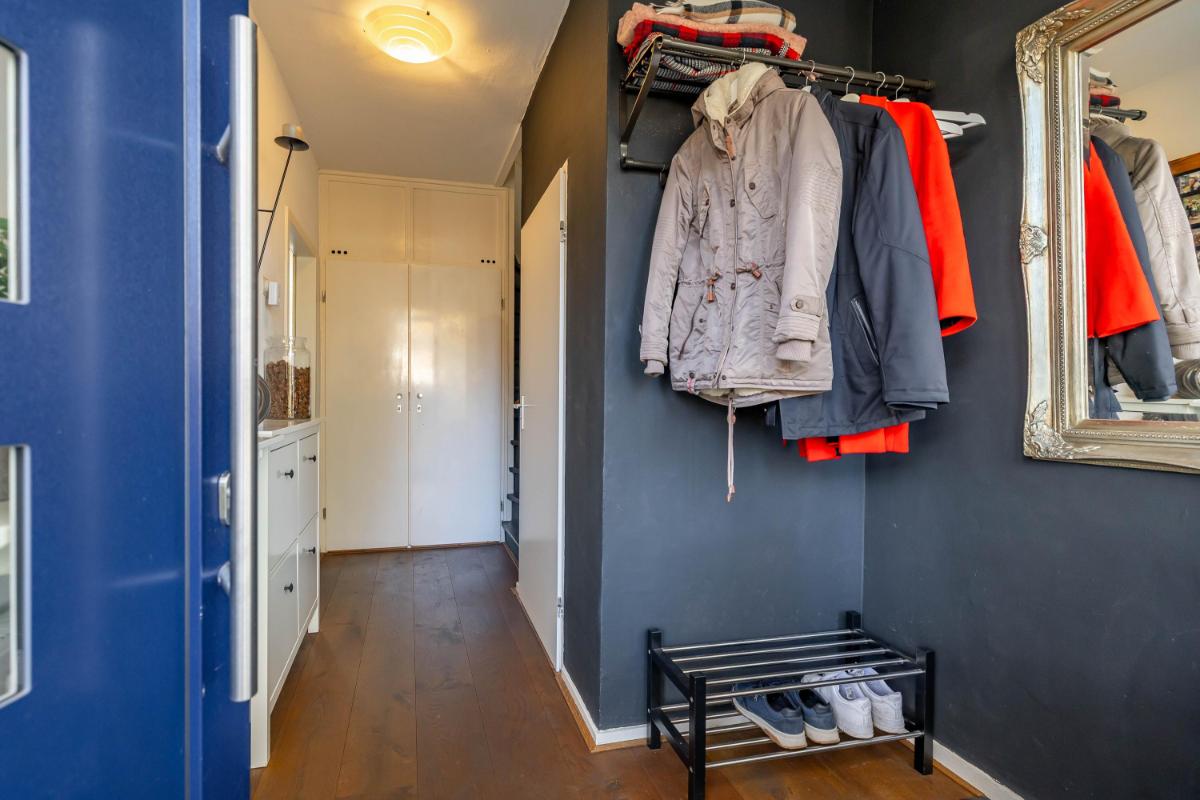 Indeling Begane grond Wanneer je de woning binnenstapt, kom je in een ruime en lichte entree met ruimte voor een garderobe. Hier vind je ook het gastentoilet. Vanuit de hal loop je door naar de sfeervolle woonkamer, waar het daglicht mooi binnenvalt en waar je verschillende gezellige zithoeken kunt creëren. De halfopen keuken sluit hier perfect op aan en is uitgerust met diverse inbouwapparatuur, zoals een vaatwasser en koel-vriescombinatie. Vanuit de keuken heb je toegang tot de praktische bijkeuken, waar de witgoedaansluiting zich bevindt. Ook kun je vanuit hier direct de tuin in – ideaal voor als je even snel iets wilt ophangen of in de zomer met gemak binnen en buiten afwisselt.