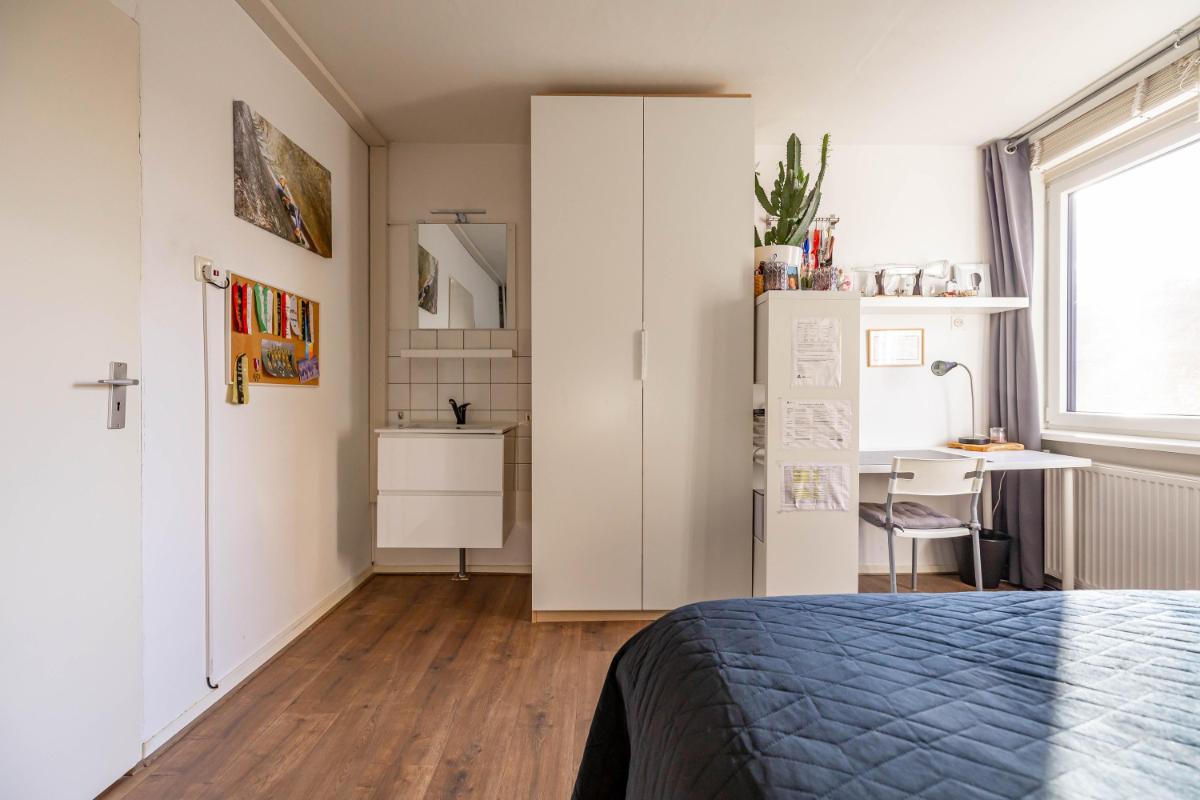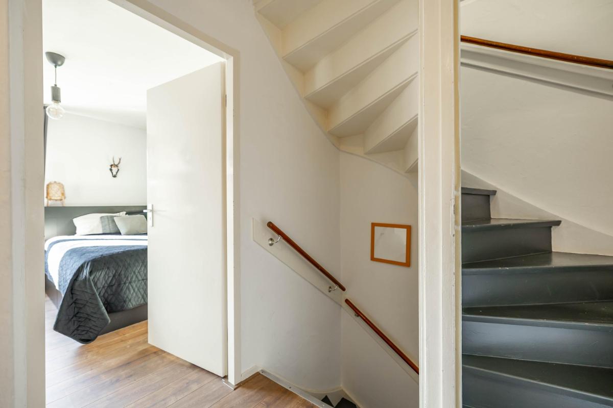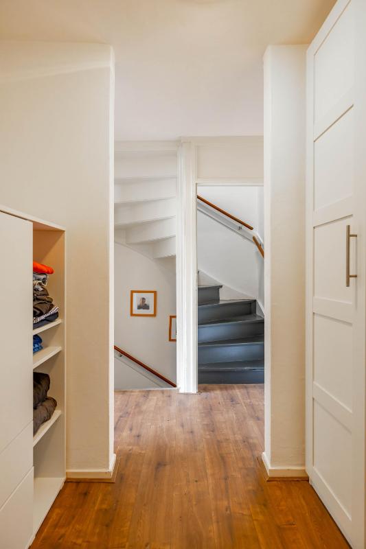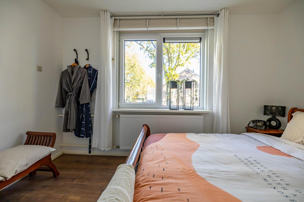 Eerste verdieping Op de eerste verdieping vind je vier verzorgde slaapkamers, elk met een fijne lichtinval en voldoende ruimte voor kasten of een werkplek. Aan de overloop bevindt zich de badkamer, die is uitgerust met een douche, een wastafelmeubel en een toilet. Daarnaast is er een ruime kastruimte aanwezig, ideaal voor het opbergen van linnengoed, koffers of seizoen kleding.