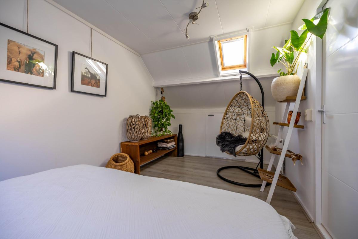 Tweede verdieping Via een vaste trap kom je op de tweede verdieping. Hier vind je een vijfde slaapkamer, een fijne extra ruimte die je ook goed kunt gebruiken als werkkamer of hobbyruimte. Achter de knieschotten is extra bergruimte aanwezig.
