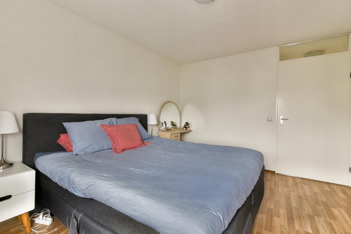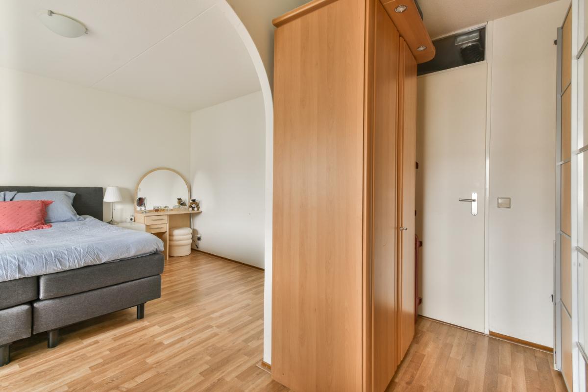 Op de eerste verdieping zijn drie (voorheen vier) slaapkamers aanwezig. De hoofdslaapkamer ligt aan de achterzijde van de woning. Deze slaapkamer heeft een grote naastgelegen kleedkamer (voorheen slaapkamer) die via een brede doorgang bereikbaar is. Indien gewenst kan deze kleedkamer eenvoudig weer aangepast worden tot een slaapkamer. De overige twee slaapkamers bevinden zich aan de voorzijde van de woning. Naast de trap naar de tweede verdieping bevindt zich een vaste kast met de cv-installatie, aansluitingen voor de wasmachine en droger en de omvormer van de zonnepanelen. De slaapkamers zijn alle voorzien van een moderne laminaatvloer, op de overloop ligt tapijt en tegels. De badkamer op de eerste verdieping biedt een douche, een wastafel met meubel, een designradiator en een toilet.