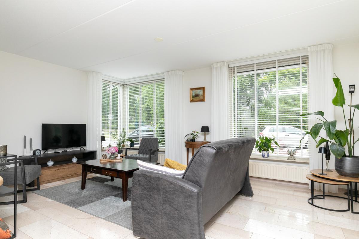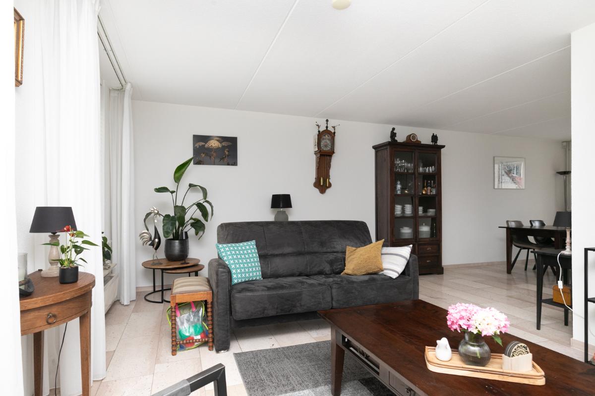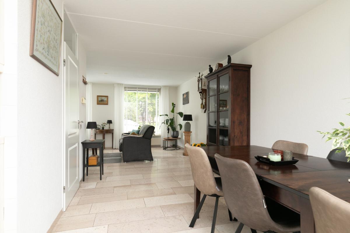 Ruimte, licht en comfort De woning biedt een comfortabele woonoppervlakte van 120 m² en een inhoud van 448 m³. Binnen tref je een lichte, L-vormige woonkamer met een stijlvolle marmeren vloer en vloerverwarming – een combinatie van luxe en behaaglijkheid. Grote raampartijen zorgen voor een prettige lichtinval en een vrij uitzicht op de verzorgde voortuin en de open ligging aan de rand van de woonwijk.
