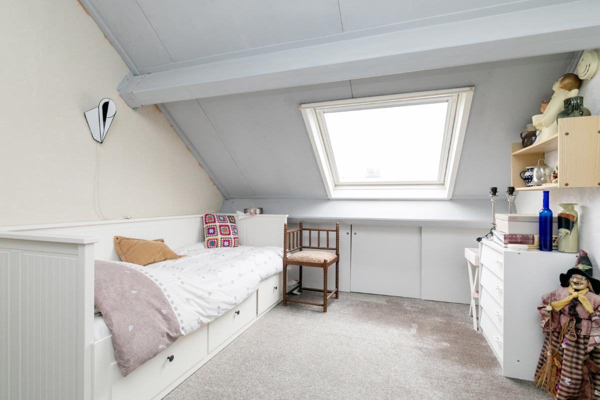 De zolderverdieping herbergt een royale vierde slaapkamer, perfect als ouderslaapkamer, kantoor of hobbyruimte.