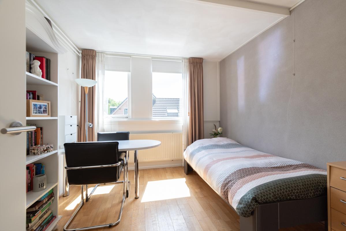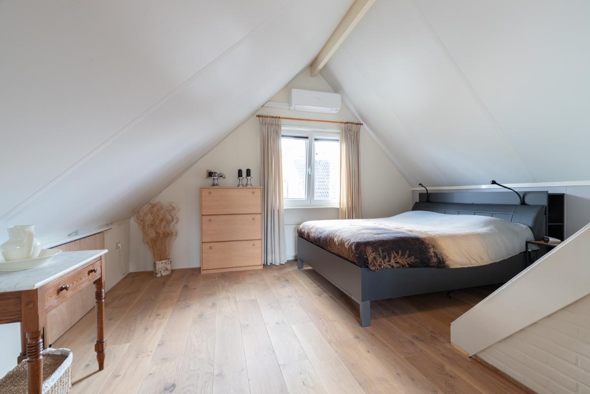 Eerste verdieping: overloop; vier slaapkamers (resp. 8, 11, 12, 21m²), ondermeer voorzien van ingebouwde kasten en dakkapel. De badkamer is voorzien van een douchecabine, hangcloset, ligbad en een wastafelmeubel. De tweede verdieping is te bereiken met een vaste trap. Hier bevindt zich een open ruimte met berging en de mogelijkheid voor een vijfde (slaap)kamer. Ook de CV installatie (Intergas 2020) en de omvormer voor de zonnepanelen bevindt zich hier.