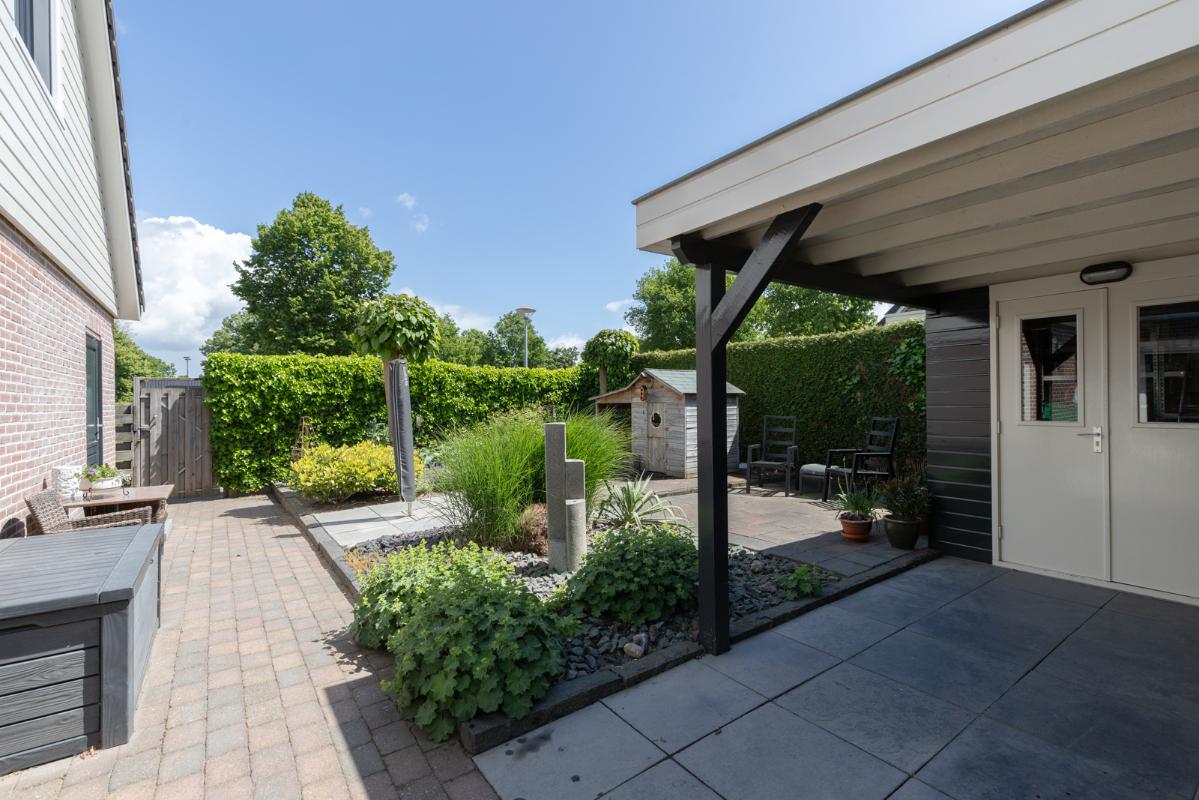 EXTRA'S: - volledig geïsoleerd en voorzien van energielabel A; - onderhoudsarme achtertuin; - de begane grond is voorzien van keramische plavuizen met grotendeels vloerverwarming; - airco in de slaapkamer boven de garage; - deuren vervangen; - 12 zonnepanelen aanwezig; - laadpaal voor elektrische auto aanwezig; - elektrisch bedienbaar uitval zonnescherm aan de achterzijde; - extra brede, geïsoleerde garage voorzien van natuursteen vloer, elektra en water. De carport (2015), is voorzien van twee lichtkoepels en verlichting; - waterontharder aanwezig.