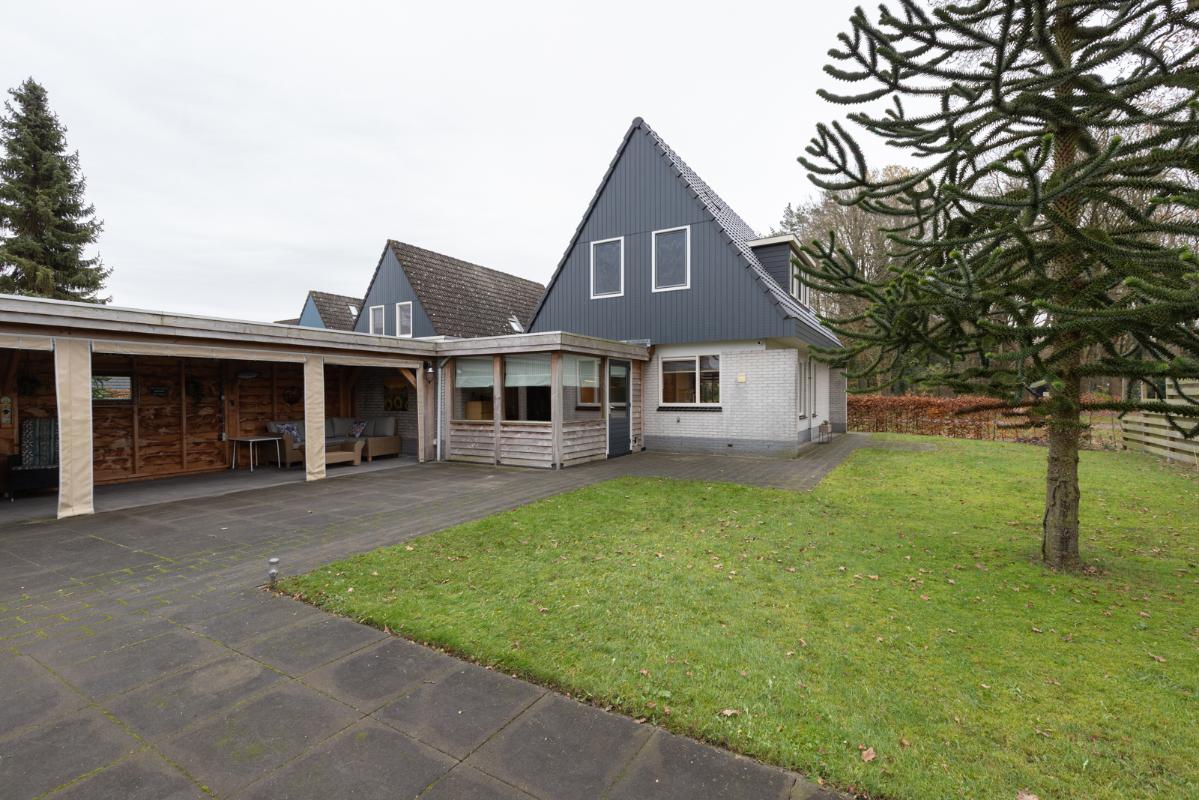 Op een fraaie locatie aan de rand van het dorp, staat dit recent gemoderniseerde VRIJSTAANDE WOONHUIS met aangebouwde GARAGE en ruime oprit met CARPORT. Deze keurig onderhouden woning is gelegen op een prachtig hoekperceel van ruim 500m² met een zonnige onderhoudsvriendelijke tuin met een degelijk gebouwde OVERKAPPING/LOUNGE (af te sluiten en verwarmbaar) en vrijstaande berging/opslagruimte. Bouwjaar 1989.