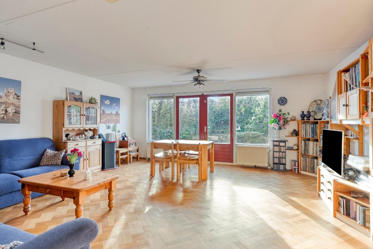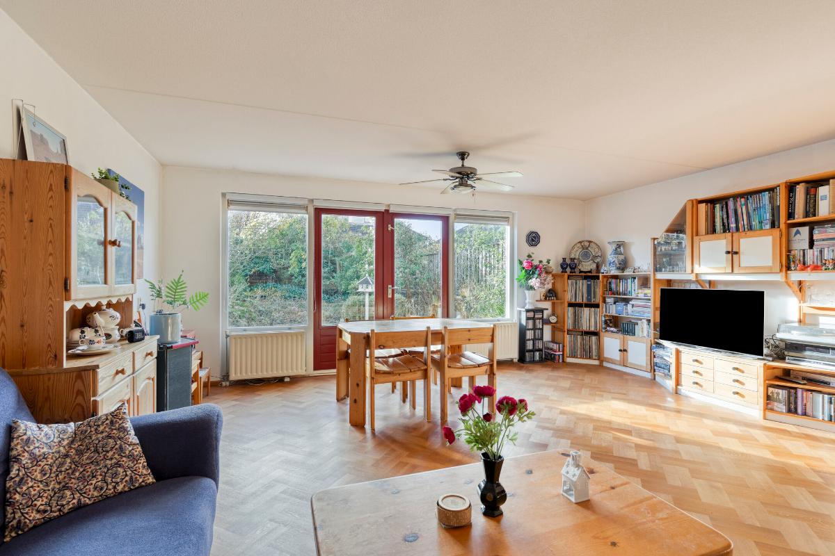 Begane grond: Entree/hal met meterkast, toiletruimte en toegang tot de woonkamer. De woonkamer van ca. 40 m² is voorzien van een parketvloer en dubbele openslaande deuren naar de tuin. De royale keuken met uitzicht op het groen, van ca 12 m² is geplaatst in een L-opstelling en is uitgerust met diverse inbouwapparatuur.