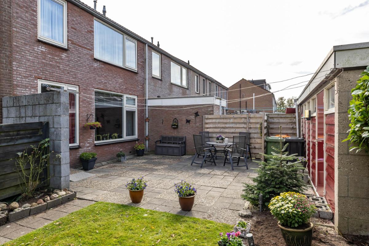 Tuin De verzorgde voortuin biedt een welkom aanzicht van de woning. Op de oprit naast het huis is ruimte voor twee auto’s. Via de zijkant bereik je de zonnige en eveneens goed onderhouden achtertuin, voorzien van een royale berging met elektra.