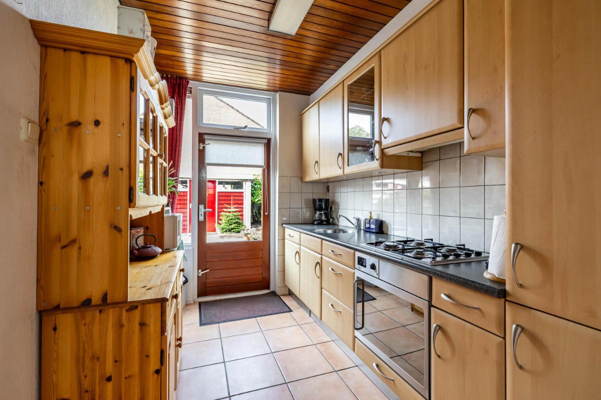 Indeling Begane grond Via de ruime voortuin bereik je de entree. Vanuit de hal zijn de gesloten keuken, het toilet, de meterkast en een praktische trapkast toegankelijk. De keuken is uitgerust met een vierpits gaskookplaat, afzuigkap en oven. Vanuit de keuken kom je zowel in de achtertuin als in de lichte doorzonwoonkamer, die dankzij de grote raampartijen heerlijk ruim aanvoelt.