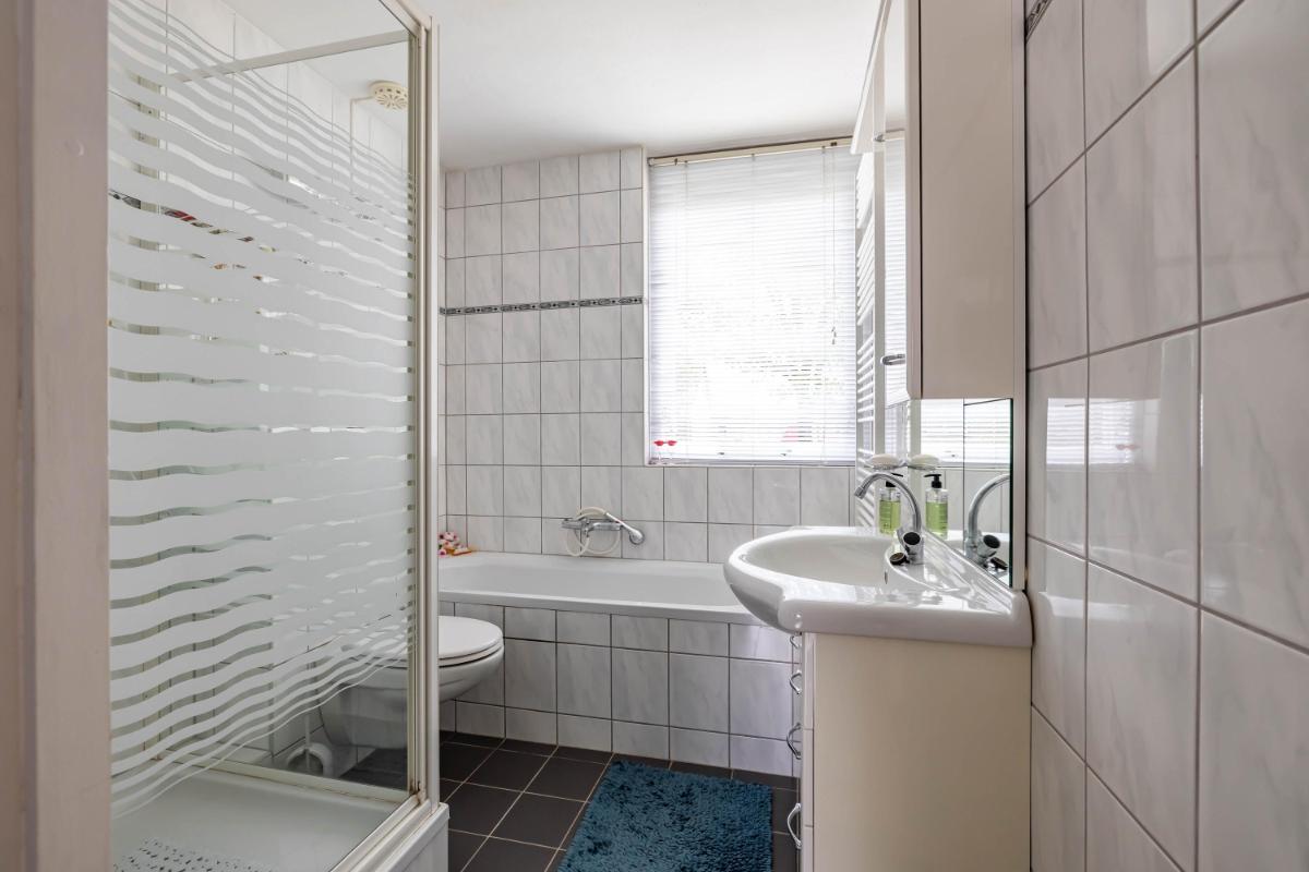 Eerste verdieping Op de eerste verdieping bevinden zich drie lichte slaapkamers, elk van goed formaat. De keurige, volledig betegelde badkamer is voorzien van een douche, ligbad, toilet en wastafelmeubel.