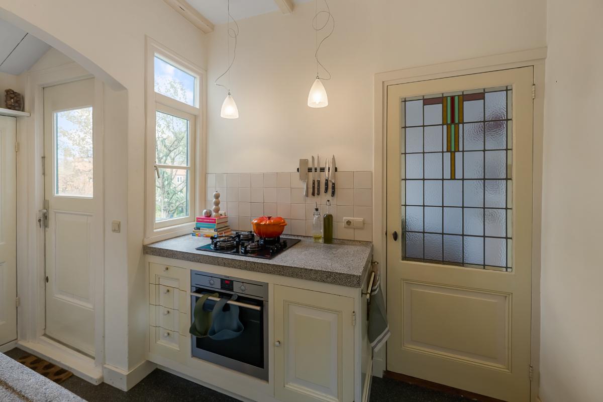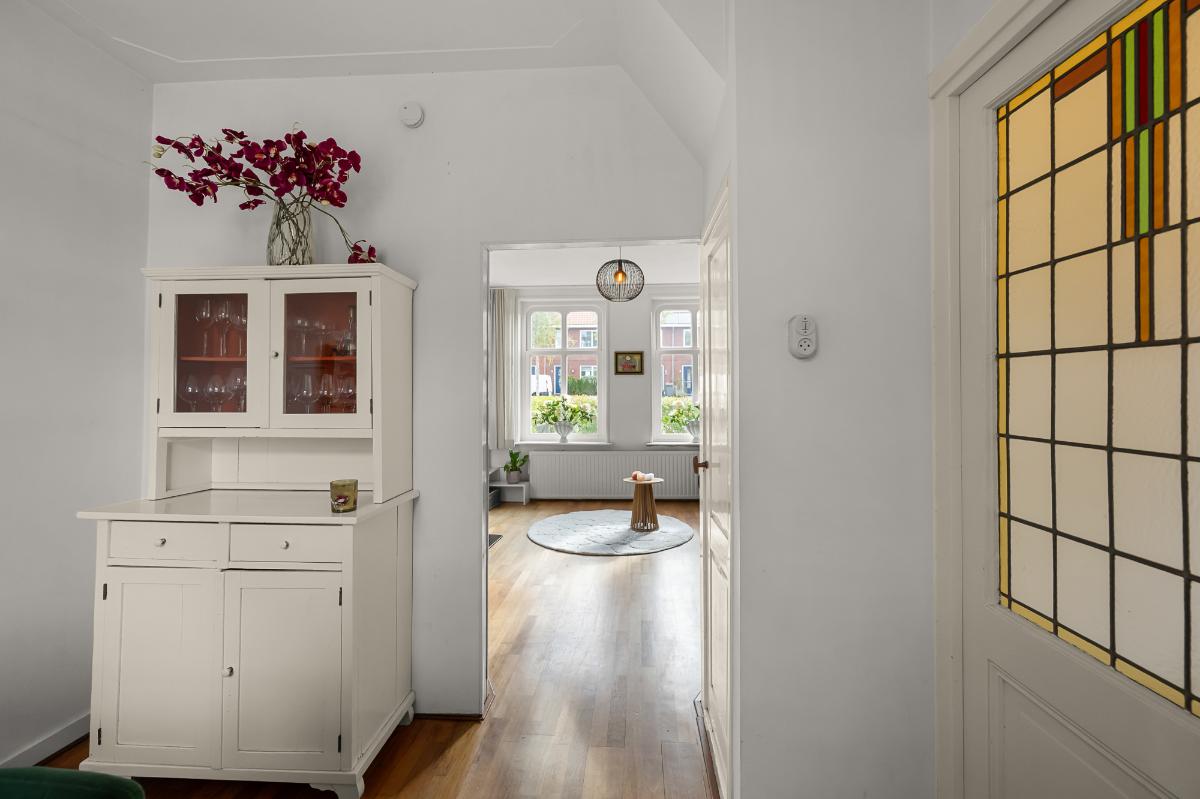 Glas-in-lood, hoge plafonds, vrijstaand, comfortabel, charmant maar eigentijds, een hele diepe tuin, op loopafstand van het centrum, wat wil je nog meer? Via de voortuin kom je binnen in de prachtige hal. Woonkamer met haard en kasten, eetkamer, keuken, opbergruimte in de kelders, toilet, 2 slaapkamers (3 mogelijk), bergruimtes in de voormalige bedstedes, badkamer, een werkruimte en een berging in de tuin, veel buitenruimte om te spelen, te relaxen en te genieten van de vogels en de buitenlucht. Nieuwsgierig? Je bent van harte welkom voor een bezichtiging. Eerst graag het bouwkundig rapport ontvangen? Ook dat kan! We zien u graag!