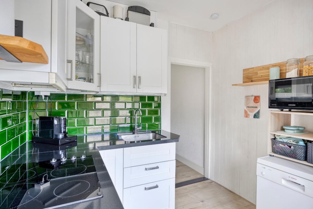 Keuken: De dichte keuken (hoekopstelling) ligt aan de tuinzijde van het appartement en is voorzien van een keramische kookplaat (4-pits), oven, afzuigkap en een losse vaatwasser. Vanuit de keuken stapt u zo het balkon op.