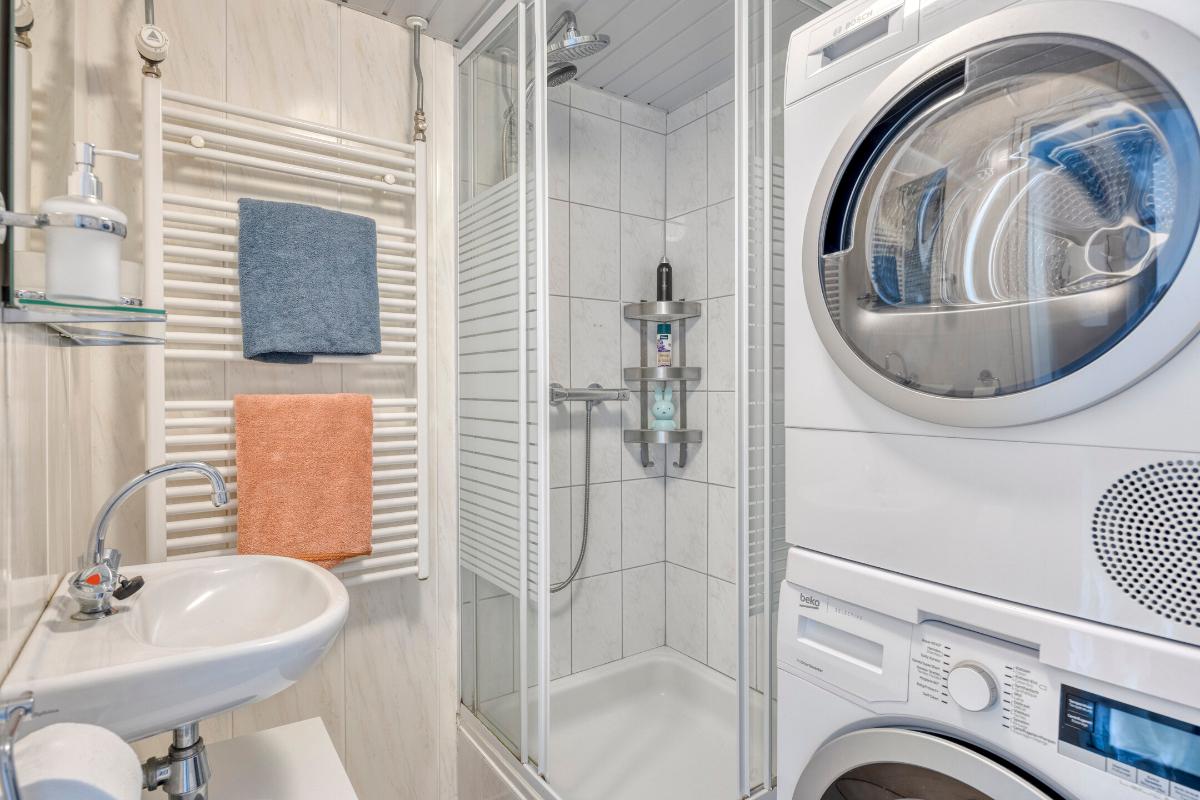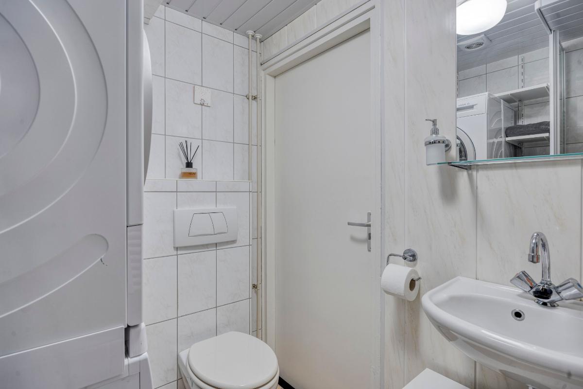 Badkamer: De volledig betegelde badkamer is praktisch ingericht met een douchecabine, wastafel, handdoekradiator en een toilet. Ook hier is een aansluiting voor de wasmachine aanwezig.