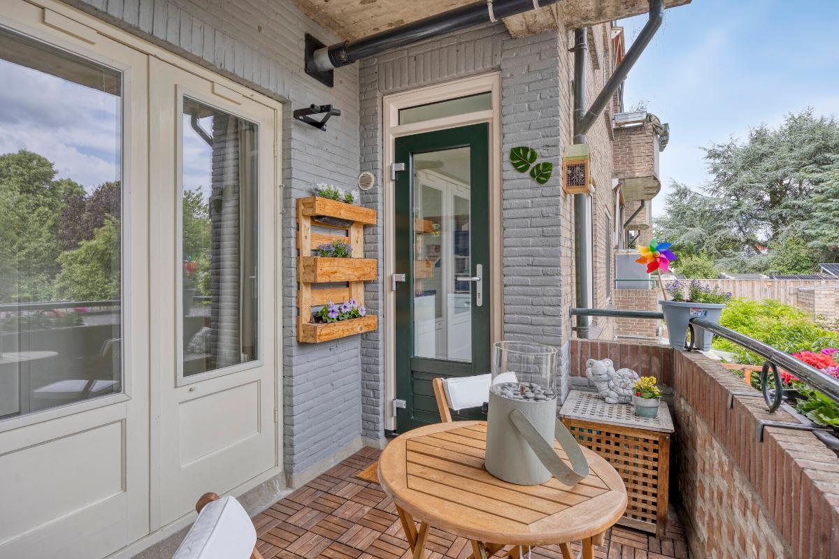 Balkon: Het overdekte balkon op het zuidoosten is bereikbaar via zowel de keuken als de werkkamer. Een heerlijke plek om in alle rust van de zon te genieten.
