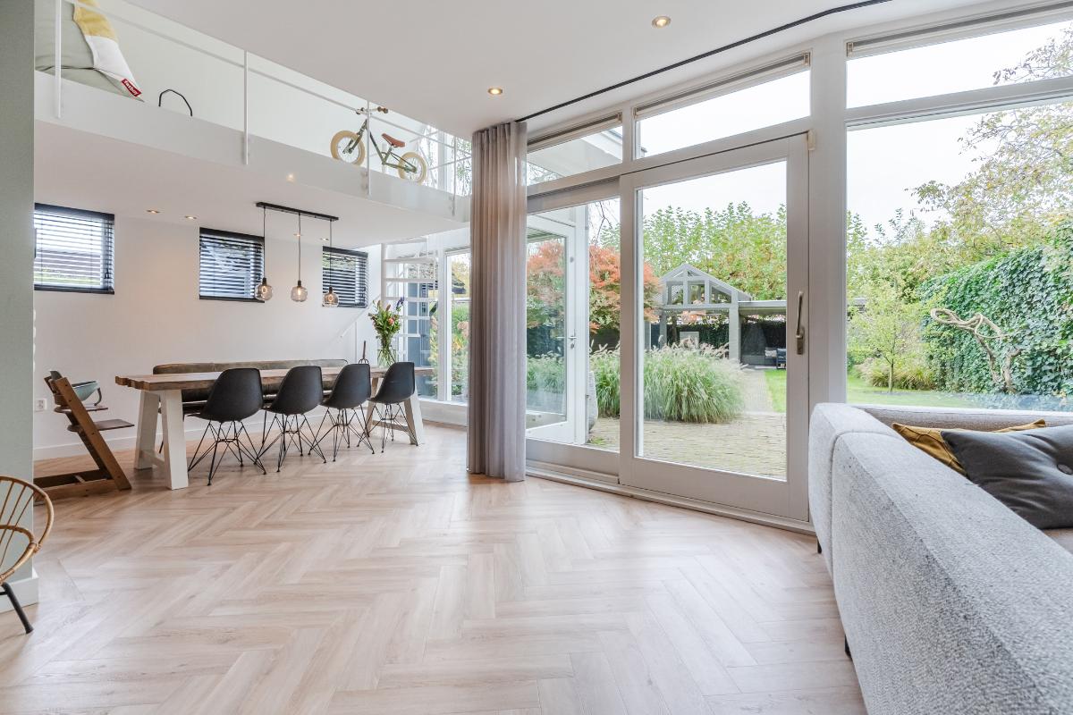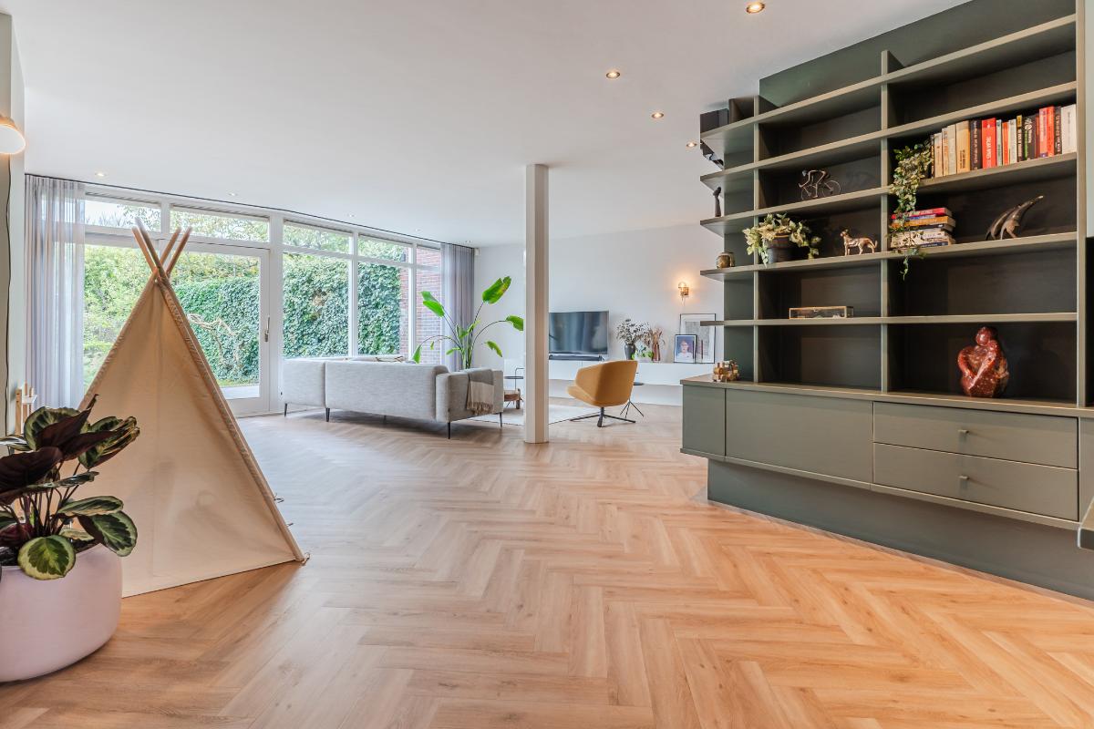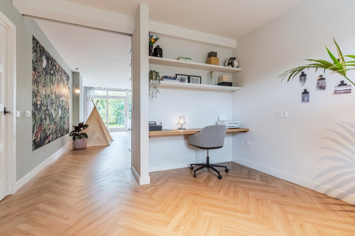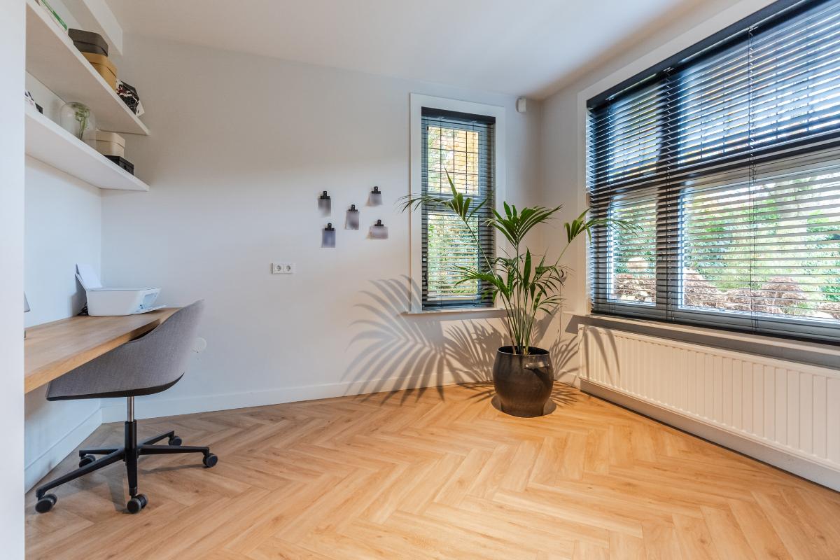 De begane grond ademt sfeer en ruimte. Je treft hier een royale, tuingerichte living met grote raampartijen en vloerverwarming en een moderne open keuken van hoogwaardige kwaliteit (2019). Daarnaast vind je op de begane grond een fijne kantoor- of speelkamer. Op de verdiepingen bevinden zich vier slaapkamers, een complete badkamer én een tweede douchegelegenheid met wastafel op de bovenste verdieping, ideaal voor het gezin met opgroeiende kinderen of als gastenverblijf.
