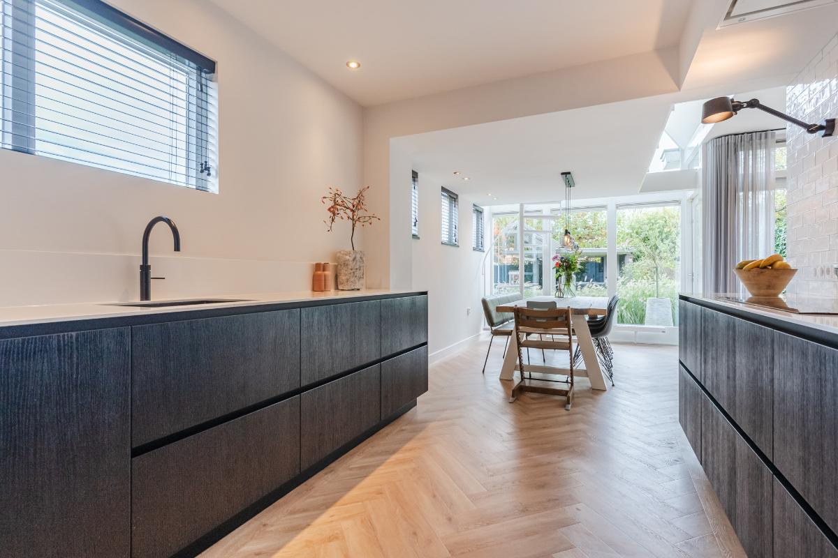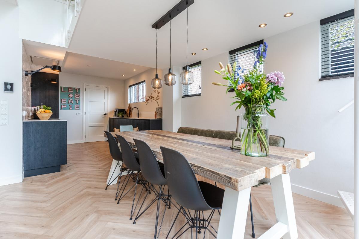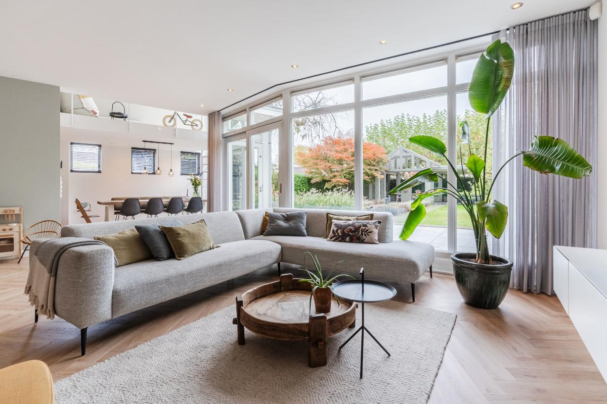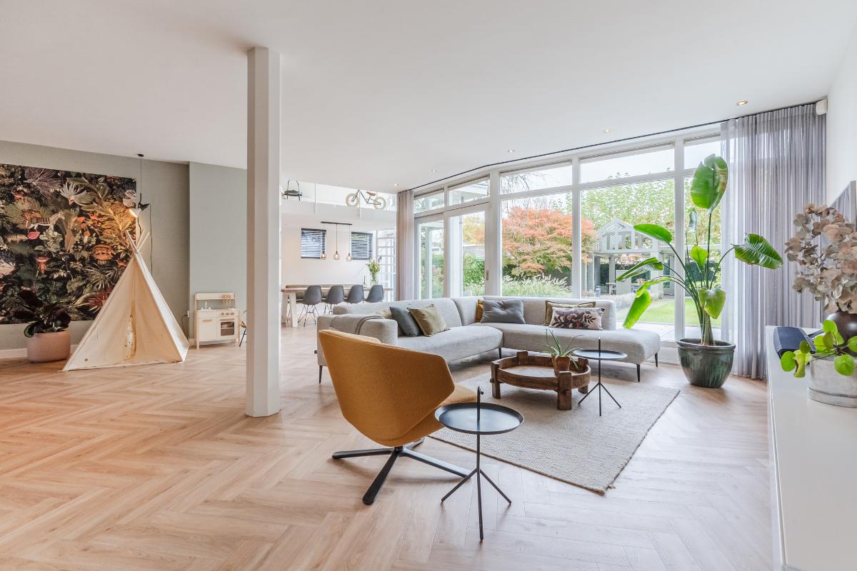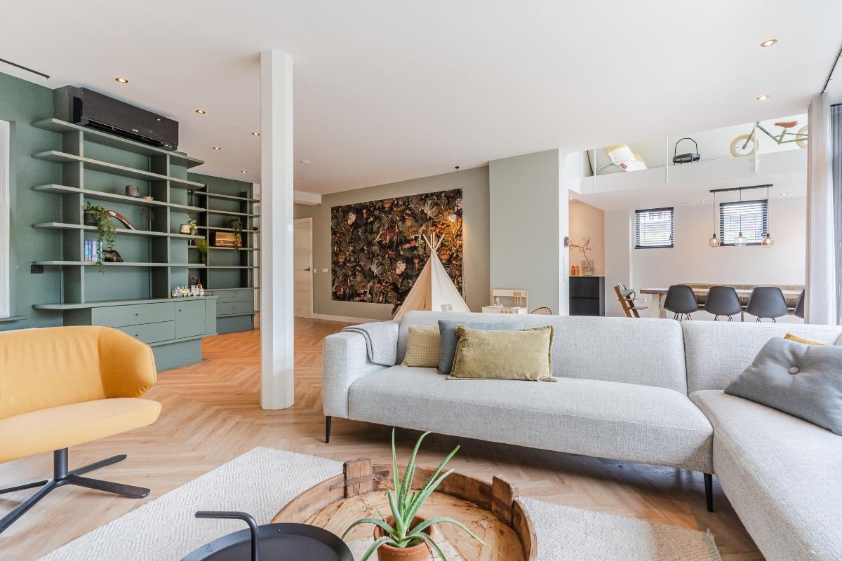 De begane grond ademt sfeer en ruimte. Je treft hier een royale, tuingerichte living met grote raampartijen en vloerverwarming en een moderne open keuken van hoogwaardige kwaliteit (2019). Daarnaast vind je op de begane grond een fijne kantoor- of speelkamer. Op de verdiepingen bevinden zich vier slaapkamers, een complete badkamer én een tweede douchegelegenheid met wastafel op de bovenste verdieping, ideaal voor het gezin met opgroeiende kinderen of als gastenverblijf.
