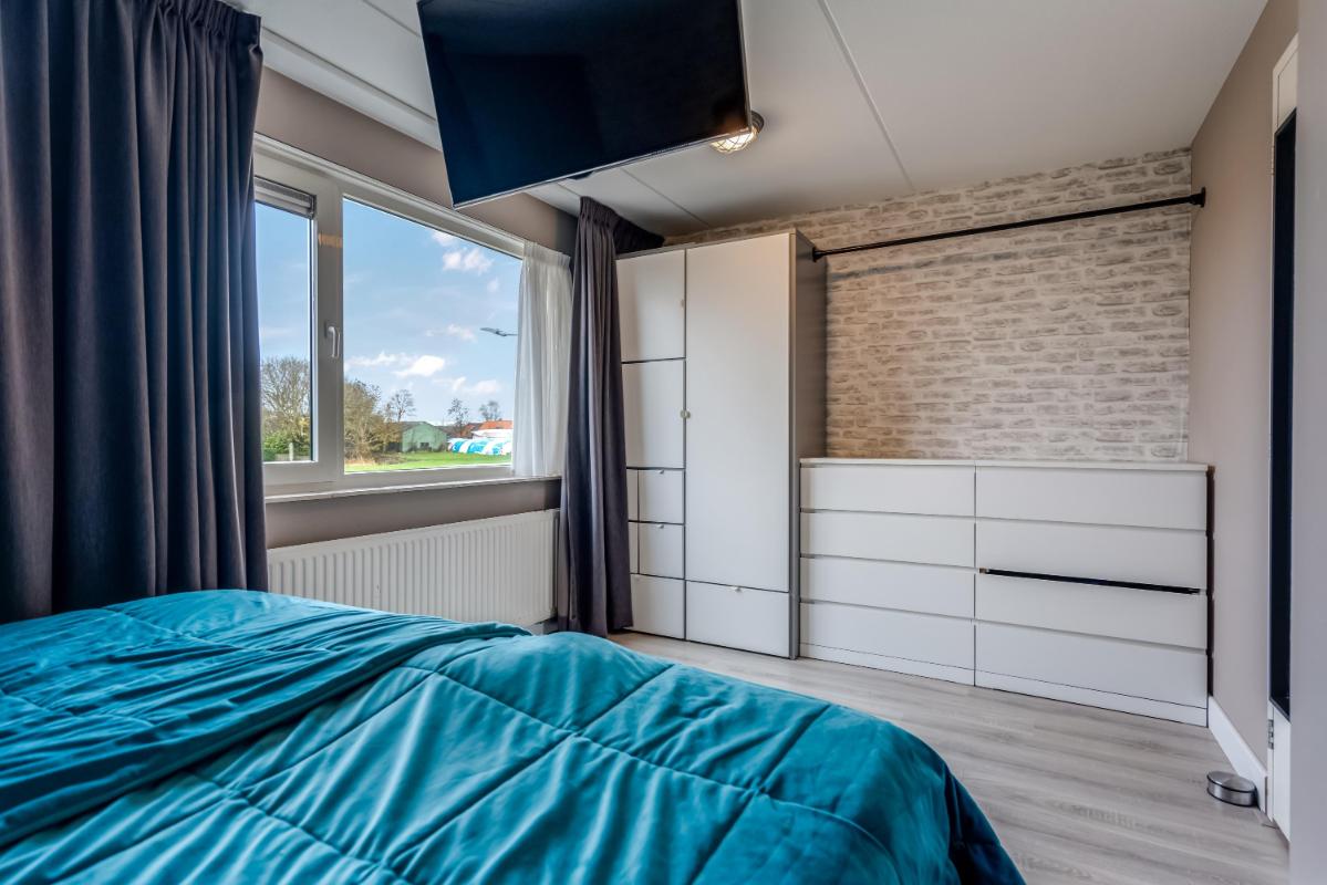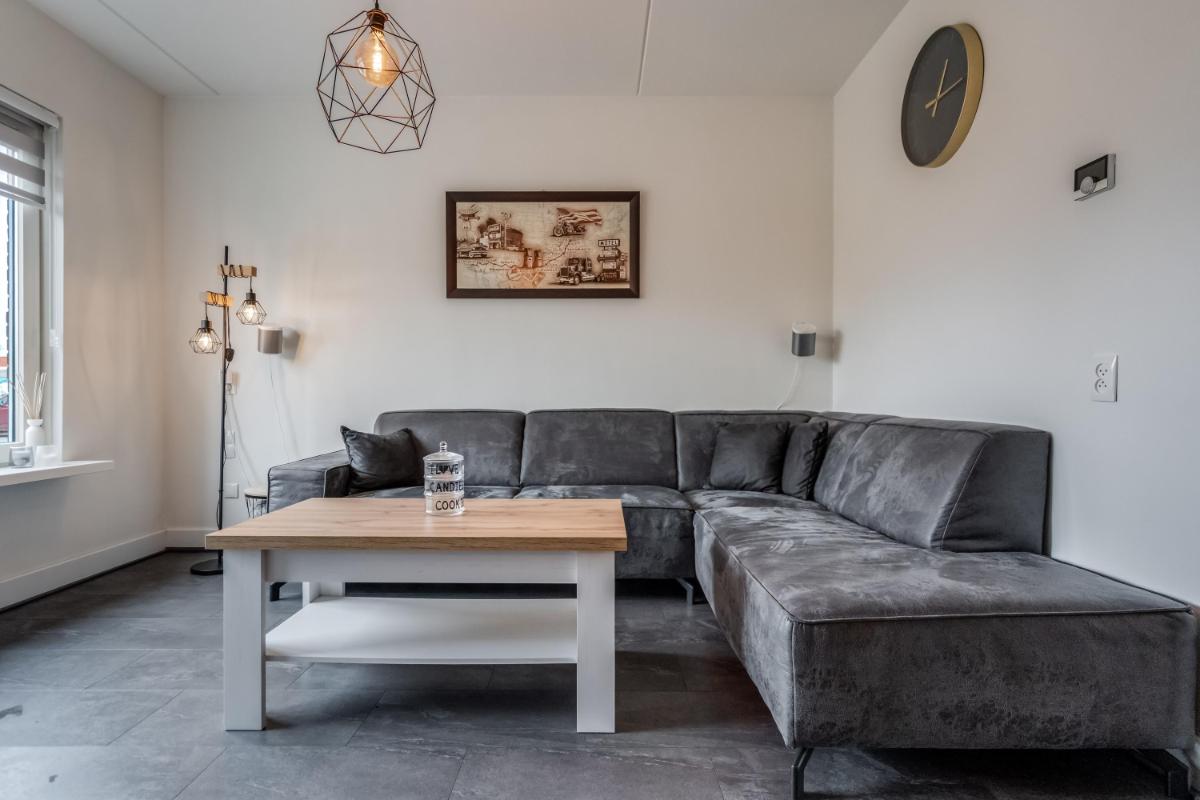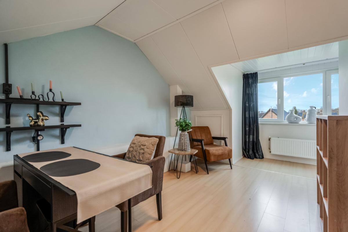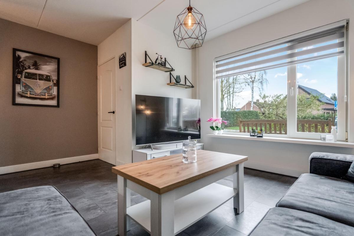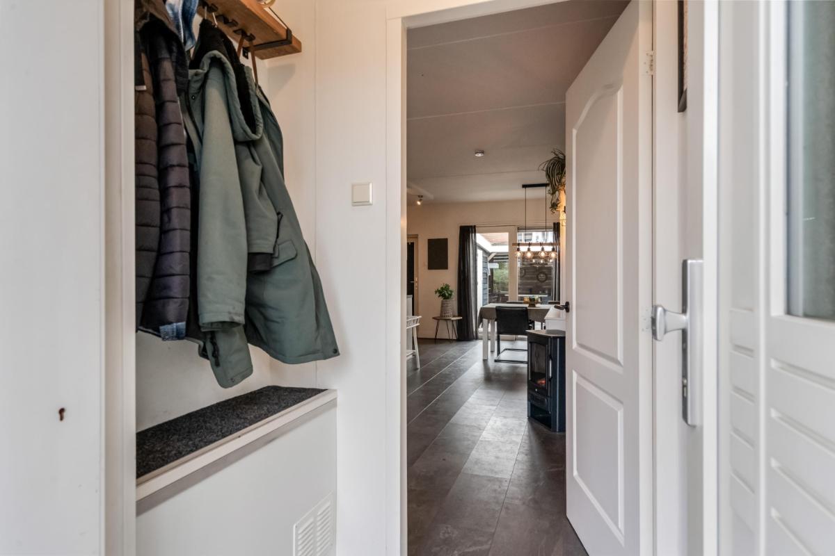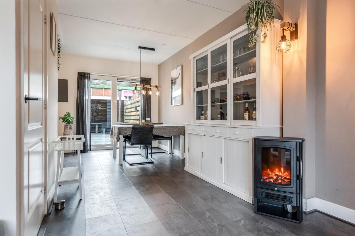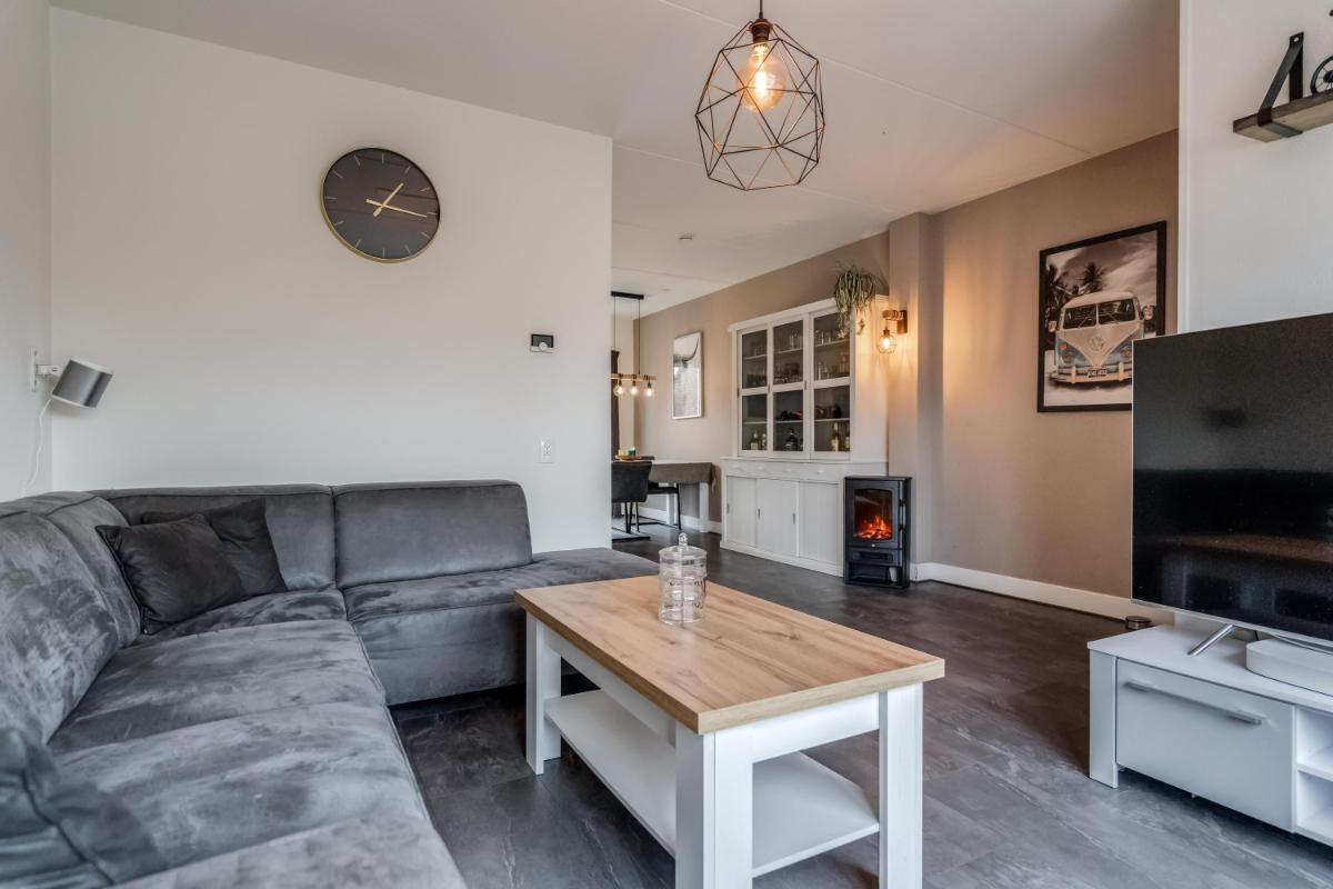 De open keuken aan de achterzijde is in 2021 geplaatst. Hier kook je met plezier dankzij de ingebouwde apparatuur en de slimme indeling. Alles is netjes, licht en goed onderhouden. Vanuit de keuken stap je via de achterdeur naar buiten.