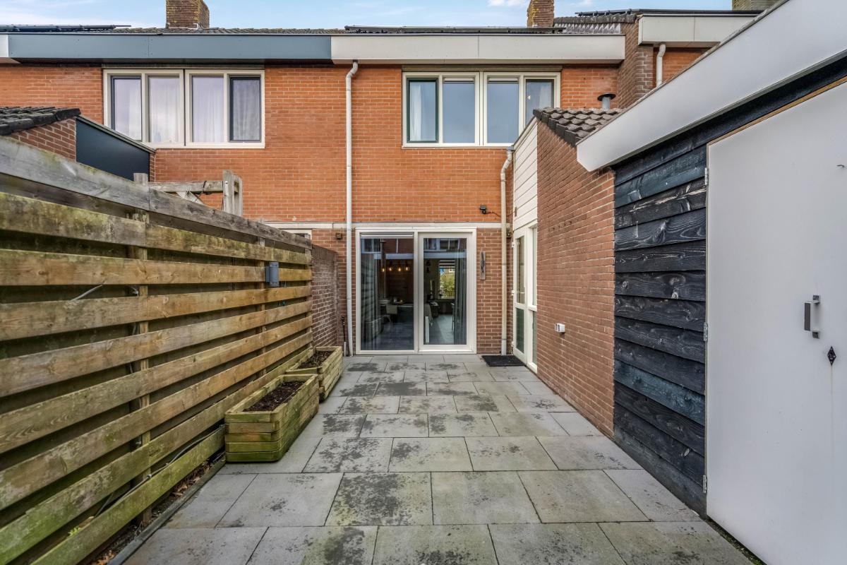 Buitenruimte en berging Er is een compacte buitenruimte direct aan de woning, ideaal als terras of om een fiets droog te stallen. Achter het huis is bovendien een vrijstaande berging aanwezig, perfect voor opslag of het stallen van fietsen.