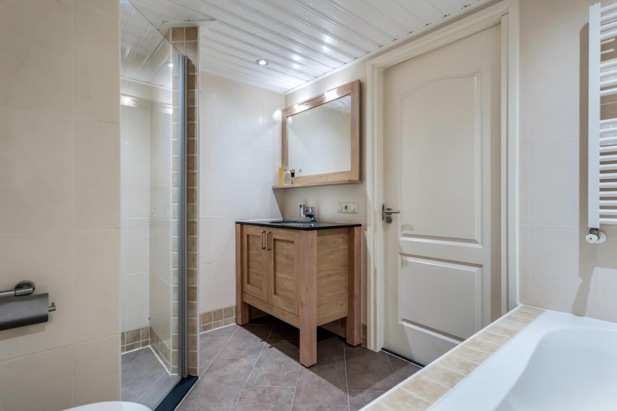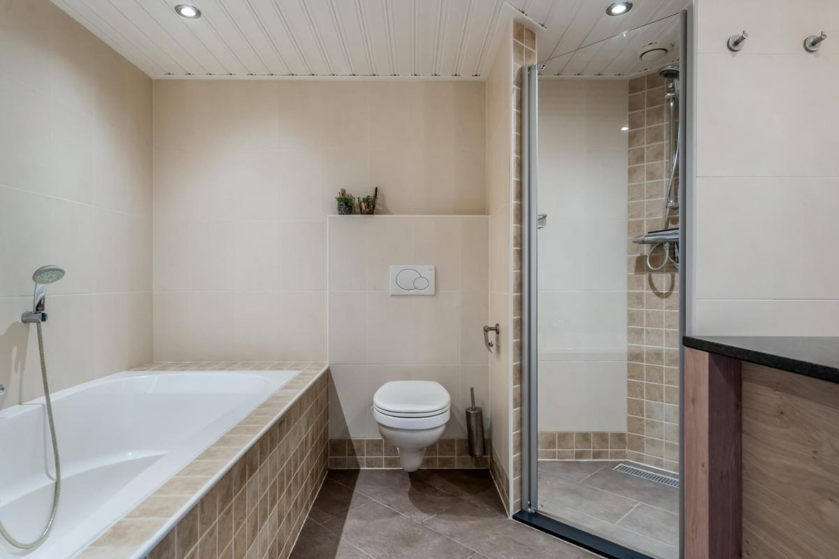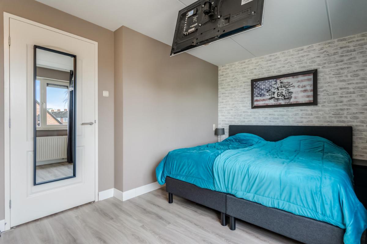 Eerste verdieping Op deze verdieping zijn twee ruime slaapkamers te vinden. Beide kamers zijn netjes afgewerkt en voorzien van kunststof kozijnen met HR-glas. De badkamer is in 2015 vernieuwd en voorzien van een inloopdouche, een tweede toilet en een modern wastafelmeubel. Alles fris en praktisch.