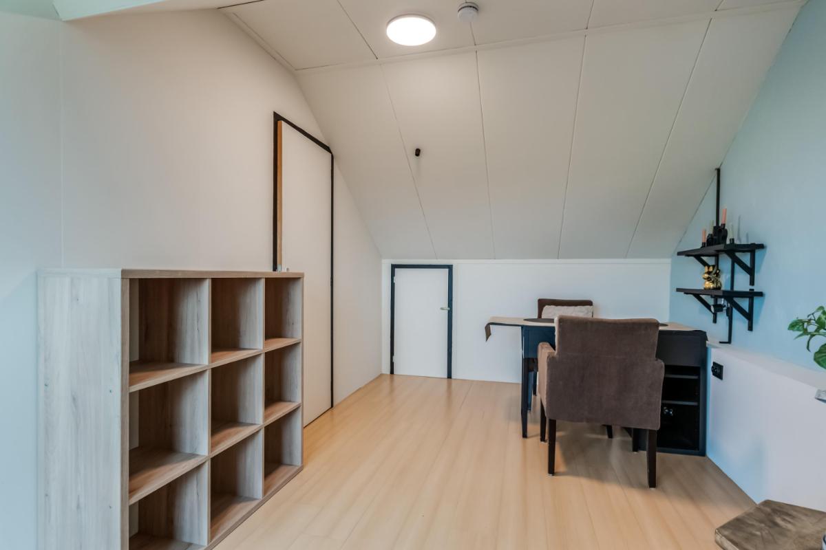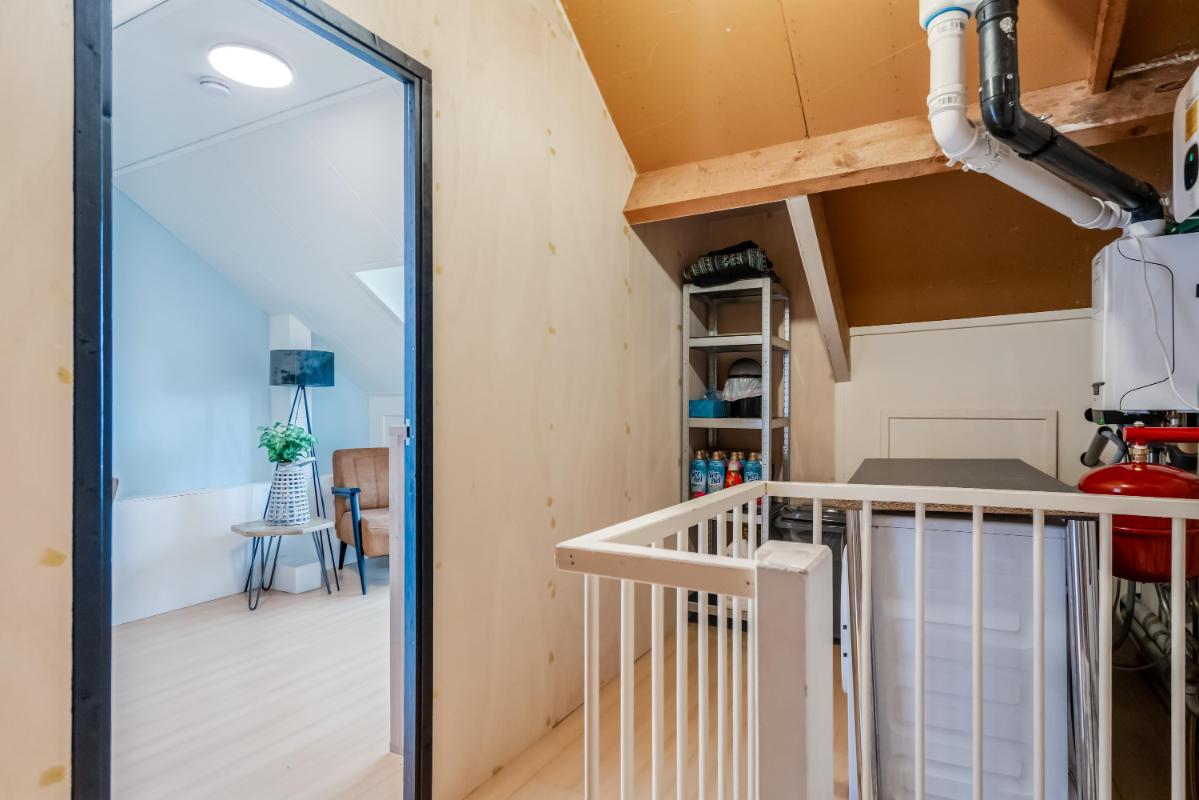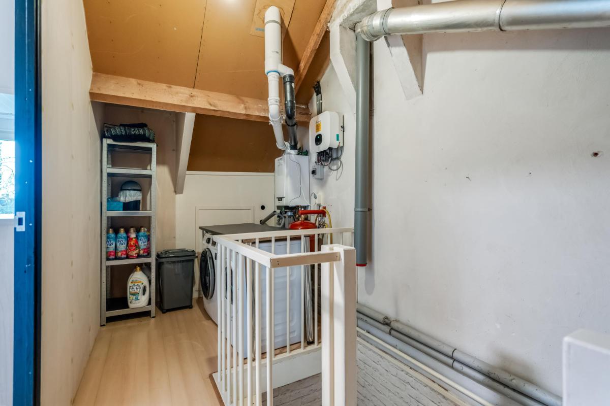Tweede verdieping De zolder is bereikbaar via een vaste trap en biedt verrassend veel ruimte. Deze verdieping wordt nu gebruikt als wasruimte en bergruimte, maar is ook geschikt als werkplek of logeerkamer. Dankzij het dakraam komt er voldoende daglicht binnen.
