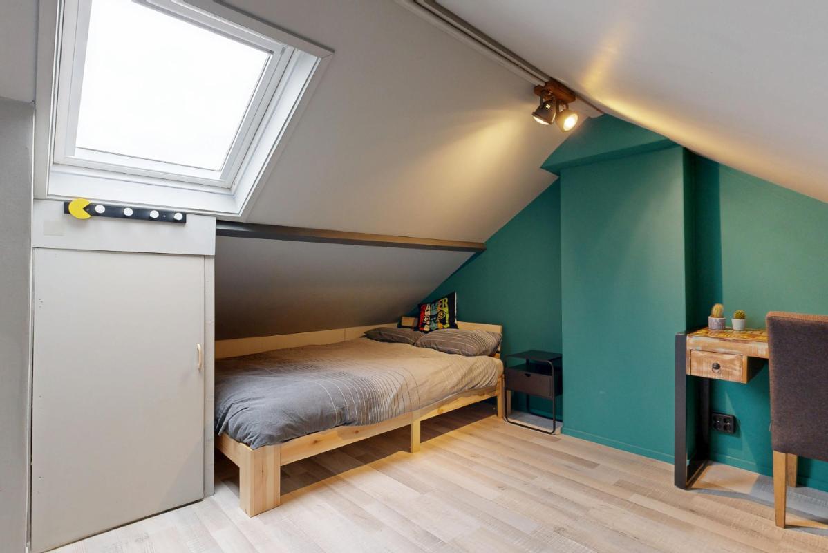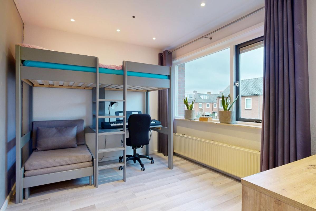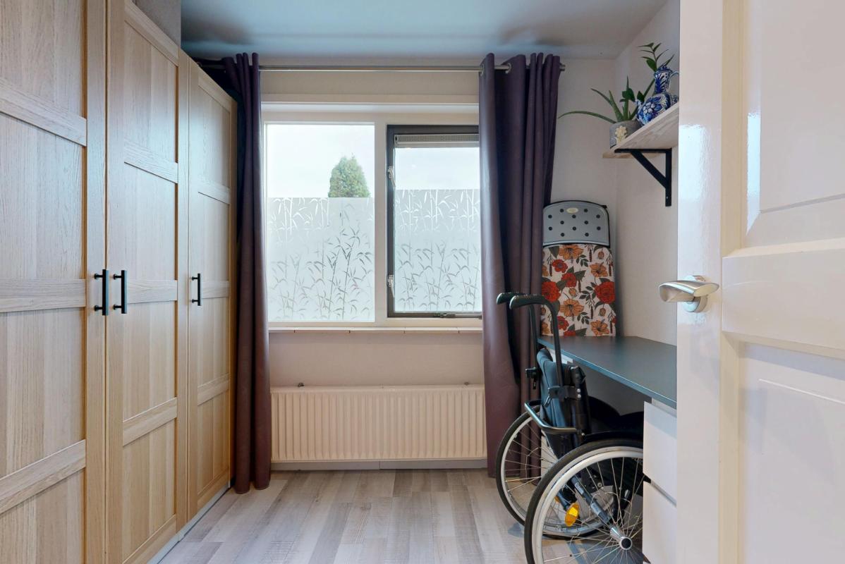 De tweede verdieping biedt een vierde slaapkamer met veel bergruimte en een dakraam, ideaal als werk- of slaapkamer.