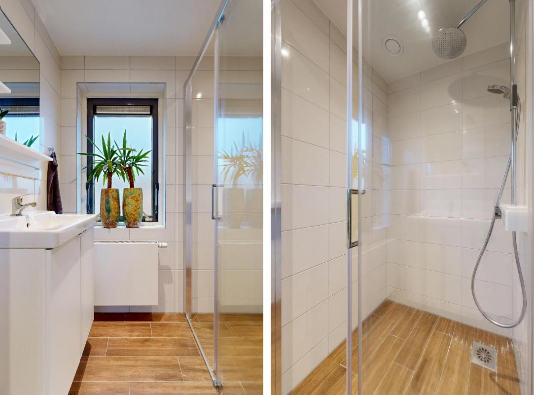 Op de eerste verdieping bevinden zich drie slaapkamers en de badkamer (2017) met douche en wastafel.