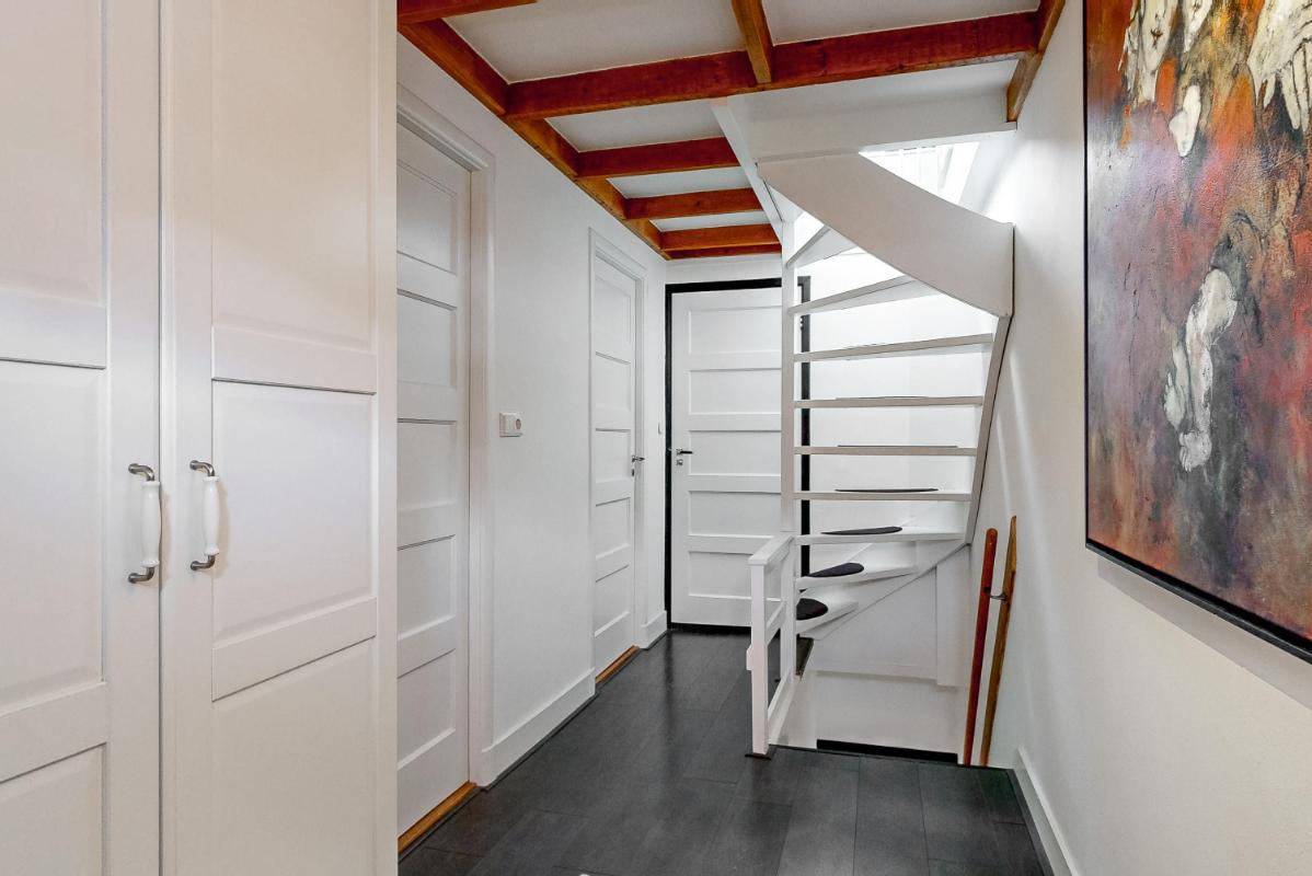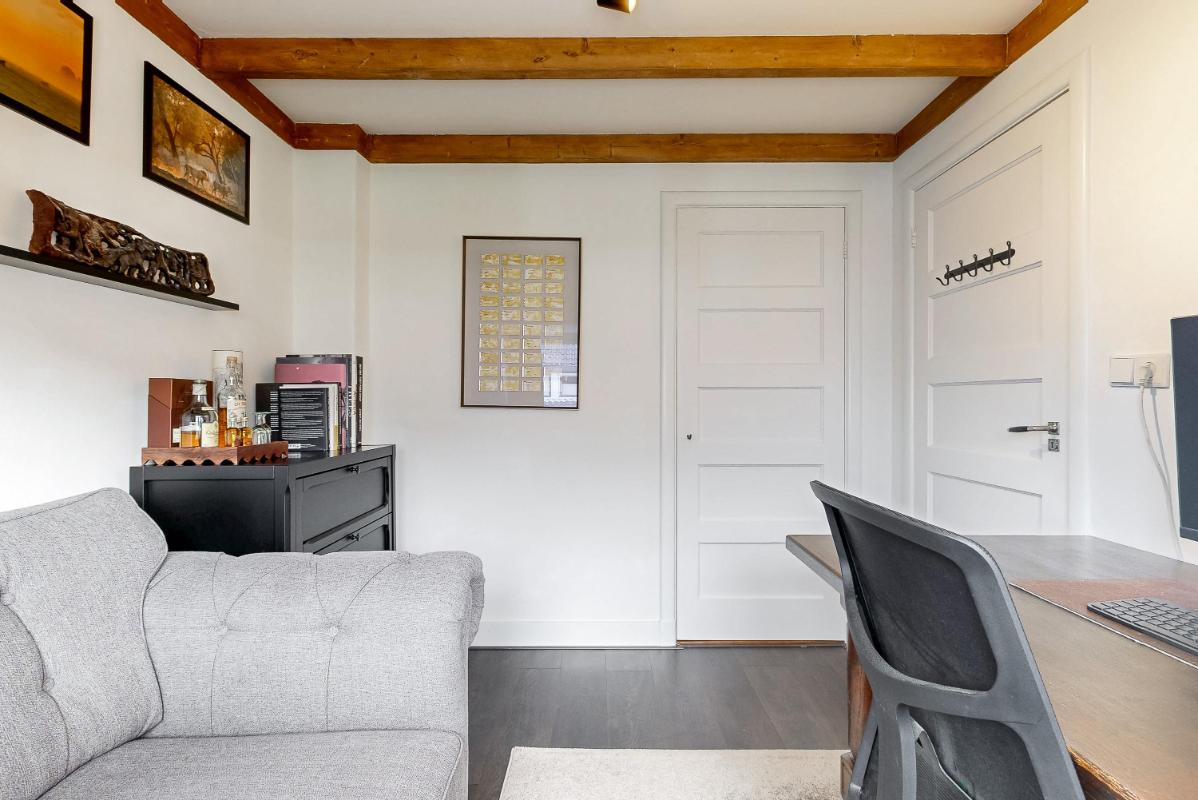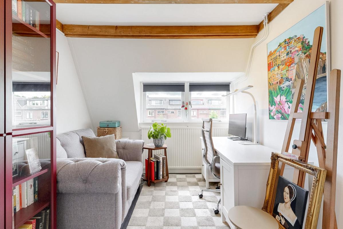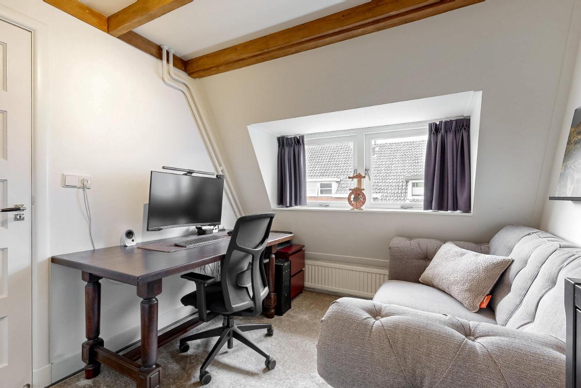 Op de eerste verdieping liggen twee slaapkamers waarbij het houten balkenplafond voor een authentieke uitstraling zorgt. Beide kamers hebben inbouwkasten, een laminaatvloer en zijn extra ruim door de dakkapellen. De badkamer is in 2020 vernieuwd en beschikt over een douche, wastafel met meubel, toilet en vloerverwarming.