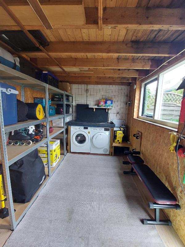 In de zonnige achtertuin op het zuidoosten vind je een heerlijke zithoek, een stenen berging voorzien van water, elektra en de witgoedaansluiting, plus een handige achterom. Het buitenschilderwerk is in 2022 nog uitgevoerd.