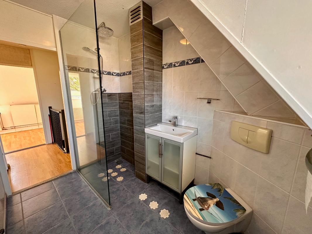 1e verdieping Aan de overloop grenzen 3 slaapkamers en een vergrote badkamer. De ruime 1e slaapkamer bevindt zich aan de achterzijde en is voorzien van een dakkapel. De 2e en 3e slaapkamer met dakkapel zijn gelegen aan de voorzijde. Sluitstuk vormt de badkamer met inloopdouche, wastafelmeubel, 2e toilet, radiator en opstelplaats voor wasmachine en droger.