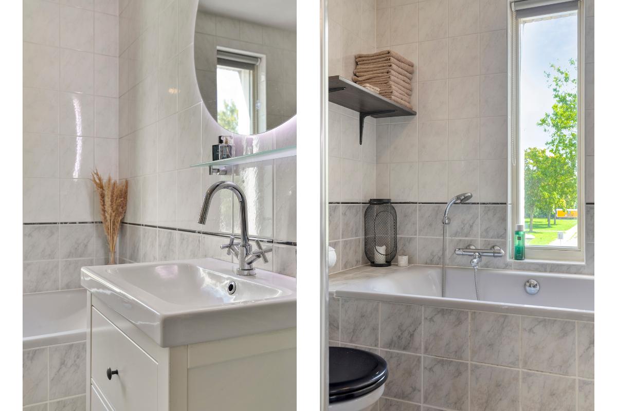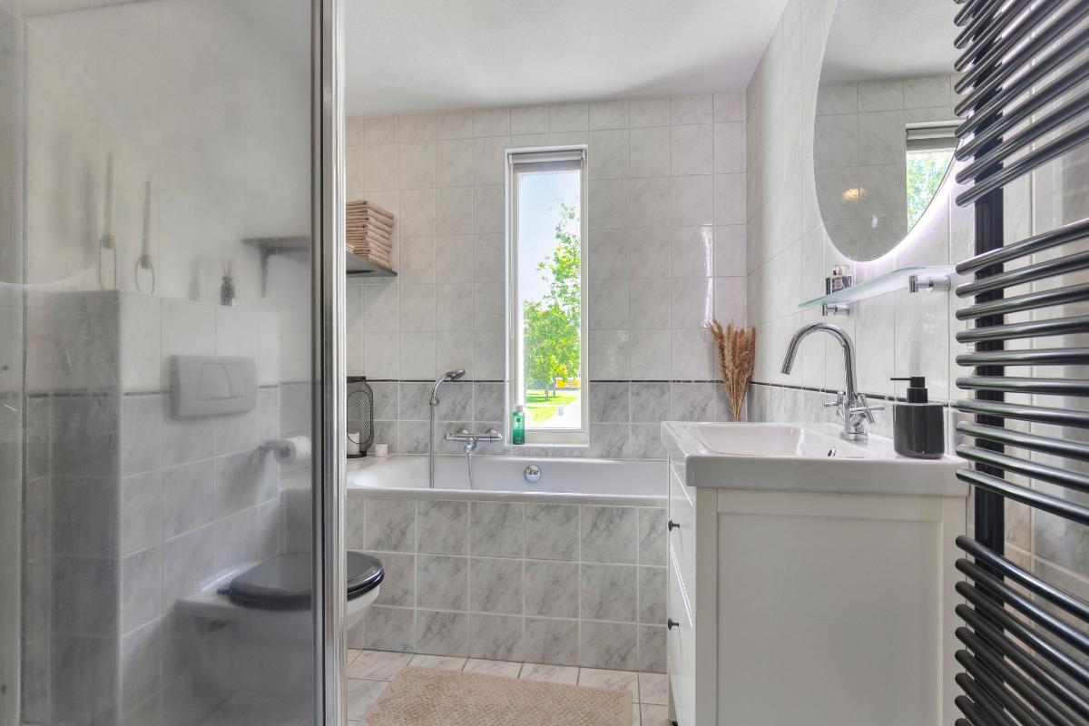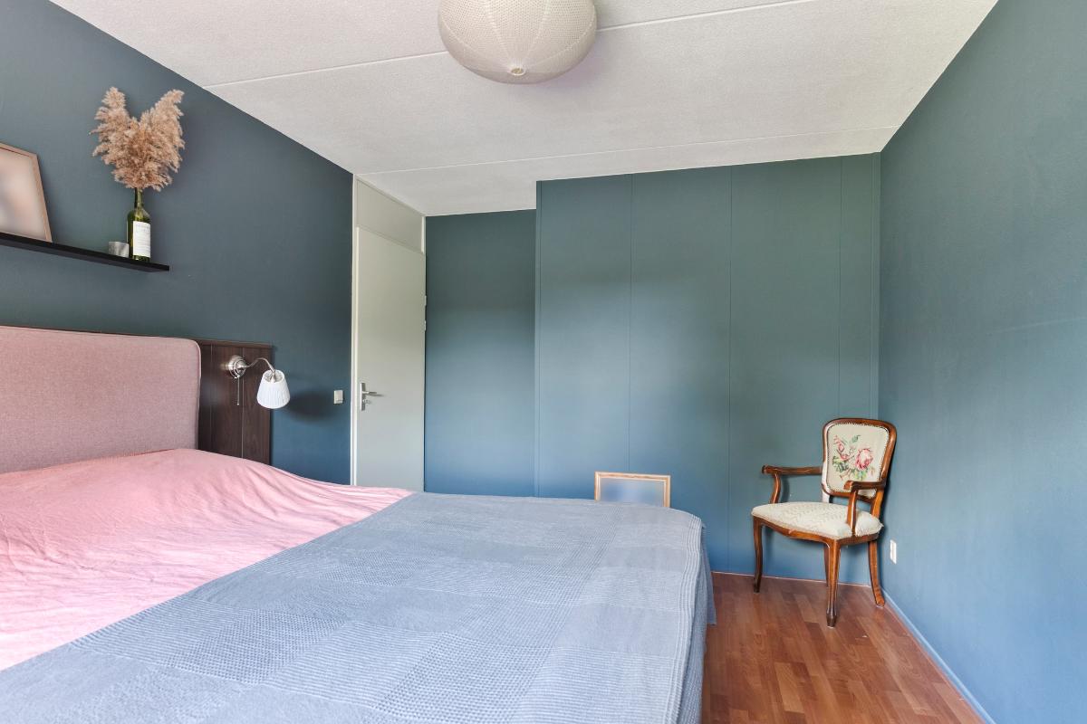 1e Verdieping: Aan de overloop grenzen 3 slaapkamers en een badkamer. De ruime 1e slaapkamer bevindt zich aan de achterzijde evenals de kleinere slaapkamer. De 2e slaapkamer en badkamer zijn gelegen aan de voorzijde. De badkamer is volledig betegeld, voorzien van douche, ligbad, wastafelmeubel met planchet en spiegel, 2e toilet en designradiator.