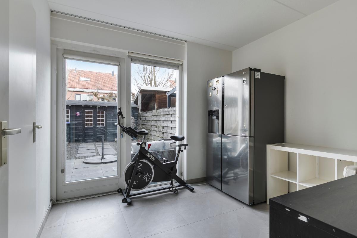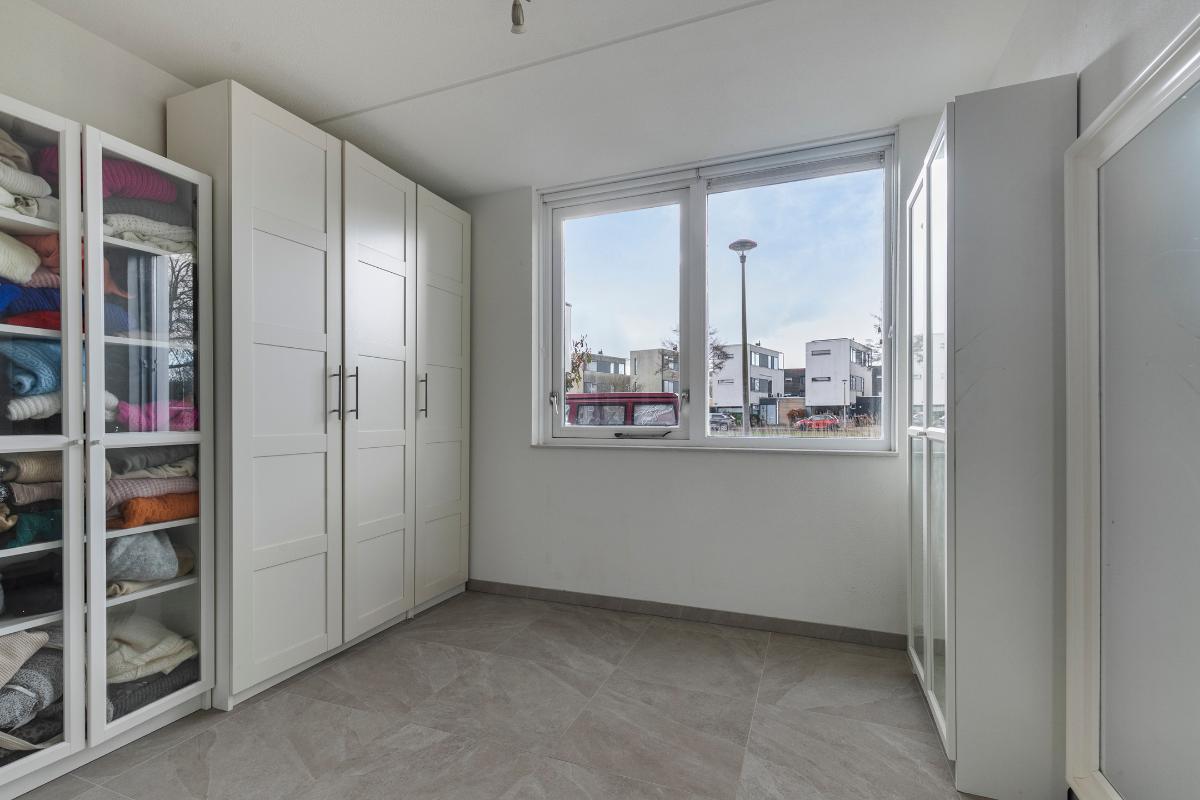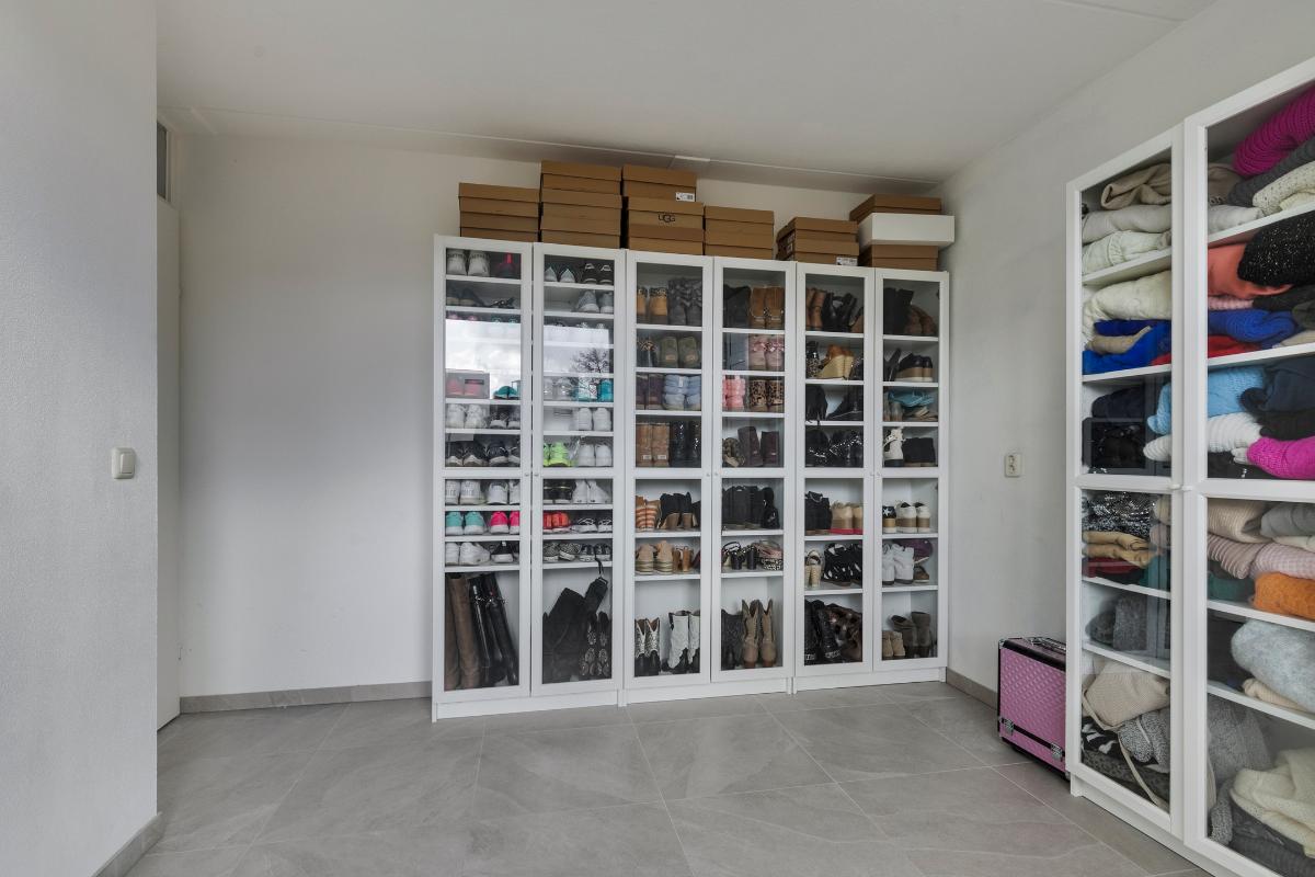 Indeling Begane grond U betreedt de woning via de entree met lange gang met daaraan de meterkast, 1e slaapkamer aan de voorzijde en 2e slaapkamer aan de achterzijde, welke ook toegang geeft tot de achtertuin, ruime berging met aansluiting voor wasmachine en droger en de opstelling van de Cv-installatie. Op de begane grond bevinden zich ook de geheel betegelde toiletruimte met wandcloset en fonteintje met onderkast en badkamer met inloopdouche, wastafelmeubel, spiegel met verlichting en een designradiator. Via een vaste trapopgang met ruime opbergkast komt u op de 1e verdieping. De gehele verdieping, met uitzondering van de badkamer, is voorzien van een tegelvloer met vloerverwarming.