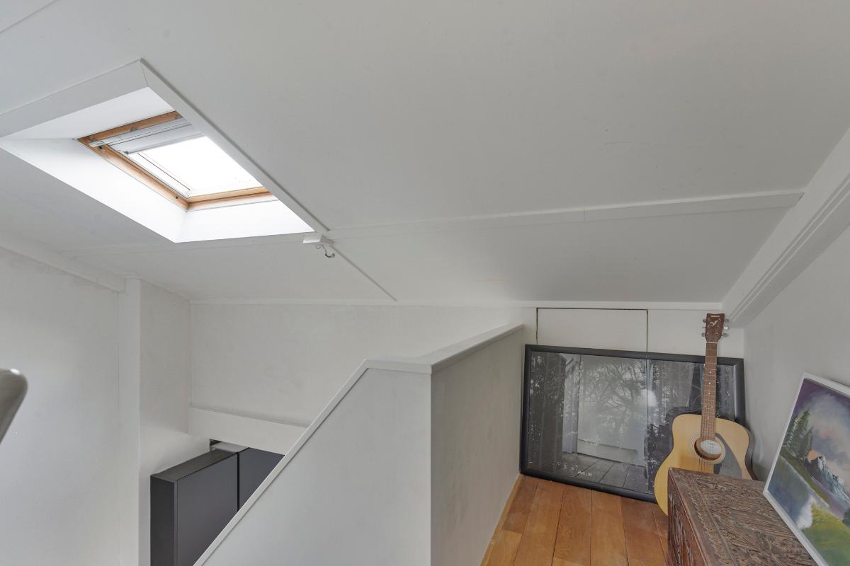 2e Verdieping Op de overloop treft u de ruime hoofdslaapkamer met vrij uitzicht en extra hoog plafond door het lessenaars dak. Achter de knieschotten op de overloop bevindt zich veel bergruimte. Aan deze zijde is het mogelijk om een dakkapel te plaatsen, dit zorgt voor de mogelijkheid voor een extra kamer wanneer de vide dicht gebouwd wordt.
