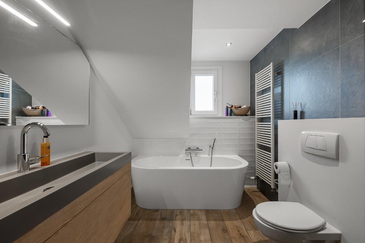 Op de eerste verdieping bevinden zich drie slaapkamers, waarvan één met handige inbouwkast. De ruime en vergrote badkamer is luxe uitgevoerd en voorzien van een toilet, badkamermeubel, douche en ligbad. De tweede verdieping biedt een vierde slaapkamer met kunststof dakkapel, voorzien van buitenzonwering en horren. Achter de knieschotten is extra bergruimte aanwezig.